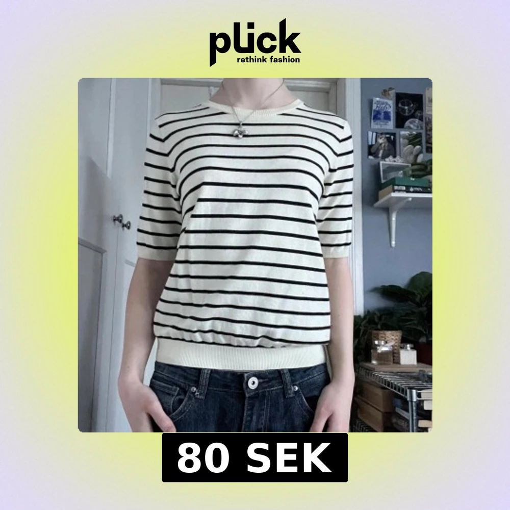 Säljer en stilren vit och svart randig tröja från h&m. Tröjan har korta ärmar och en bekväm passform. Perfekt för en avslappnad look. 🖤🤍 litet hål i armhålan men enkelt att sy igen!