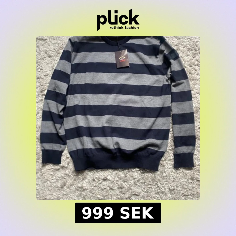 Säljer en snygg långärmad tröja från Paul & Shark i marinblått och grått med breda ränder. Tröjan har rund halsringning och ribbade muddar. Perfekt för dig som gillar klassisk stil med en sportig touch. Nypriset är ca 3000