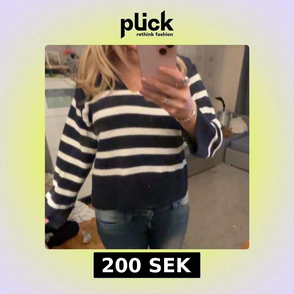 Stickad randig tröja med slits på sidorna och en ”krage” Från Gina tricot, sällan använd storlek M