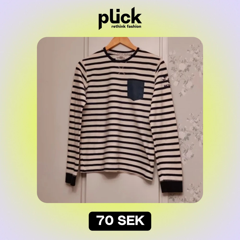 Fin randig tröja. Vit med marinblå . Bra skick. Bara lite använd.