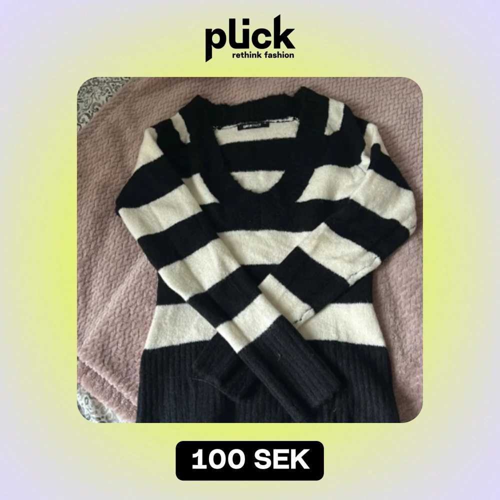 Randig tröja, svart och vitt, andvänd några gånger, ginatricot, storlek small (S) acrylic🫰🏻