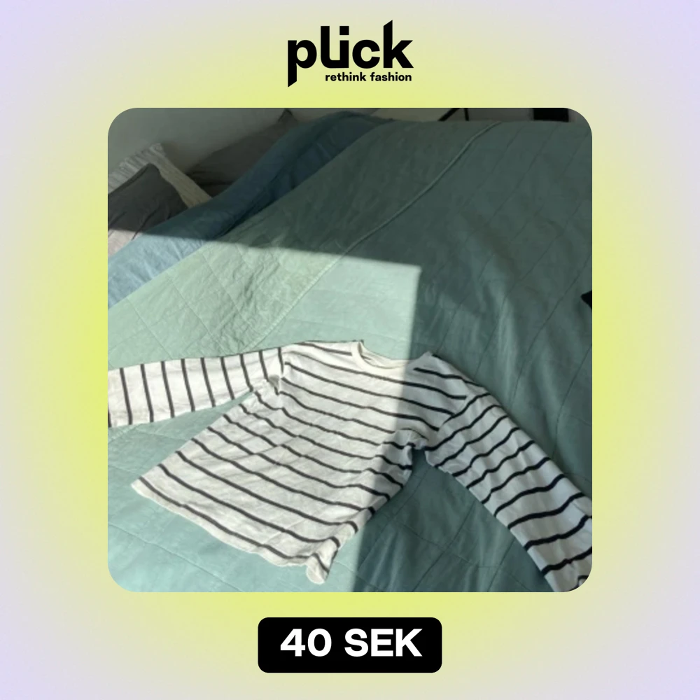 Vit svart randig lĂ„ngĂ€rmad tröjađ€đ€ Skön, bekvĂ€m och inga hĂ„l eller nĂ„t sĂ„nt i den! Storlek 134 men funkar nog för 128!đ€đ€âïž