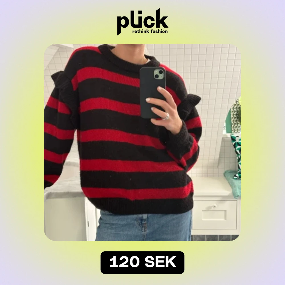 Stickad tröja med liten volang vid axlarna! Storlek M