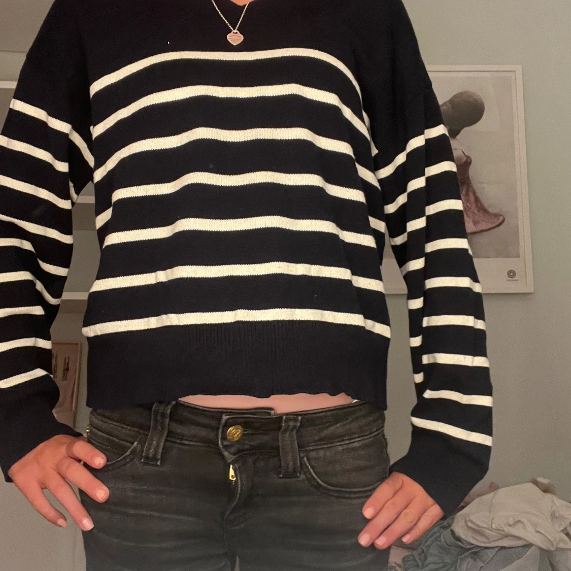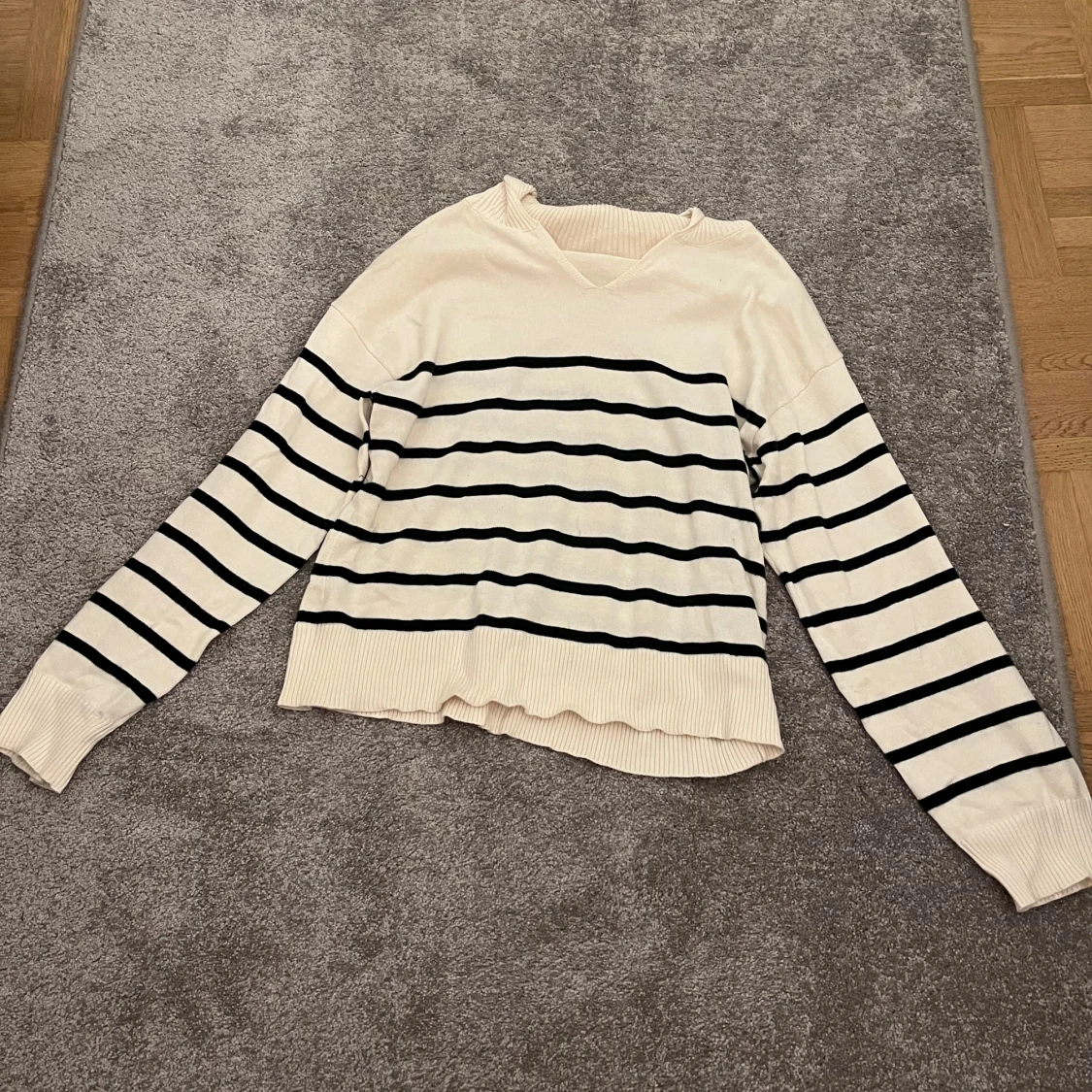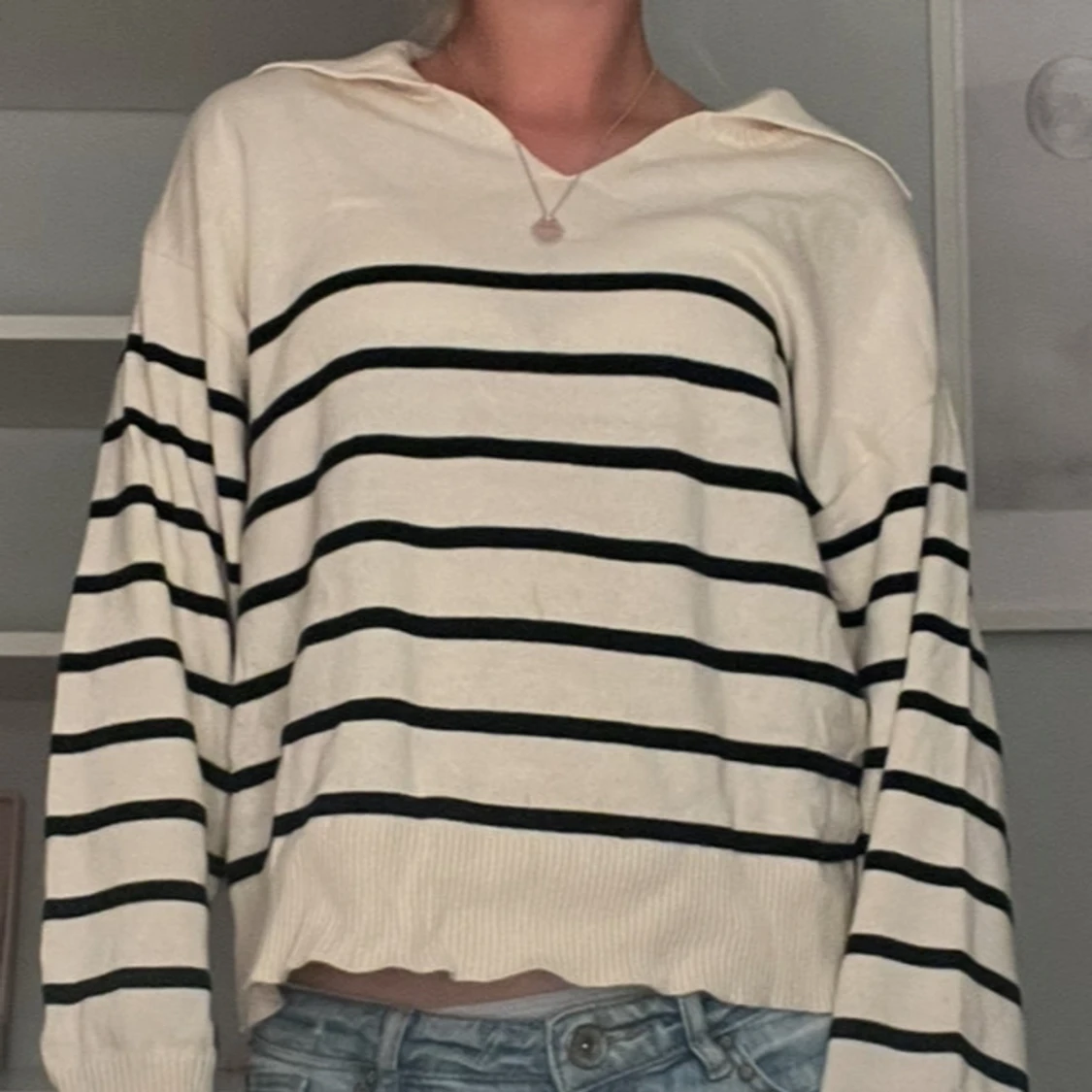 Jag säljer två likadana randiga tröjor i vit och blått båda är i från Gina Tricot och är i storlek 146/152 100 kr för båda 💓
