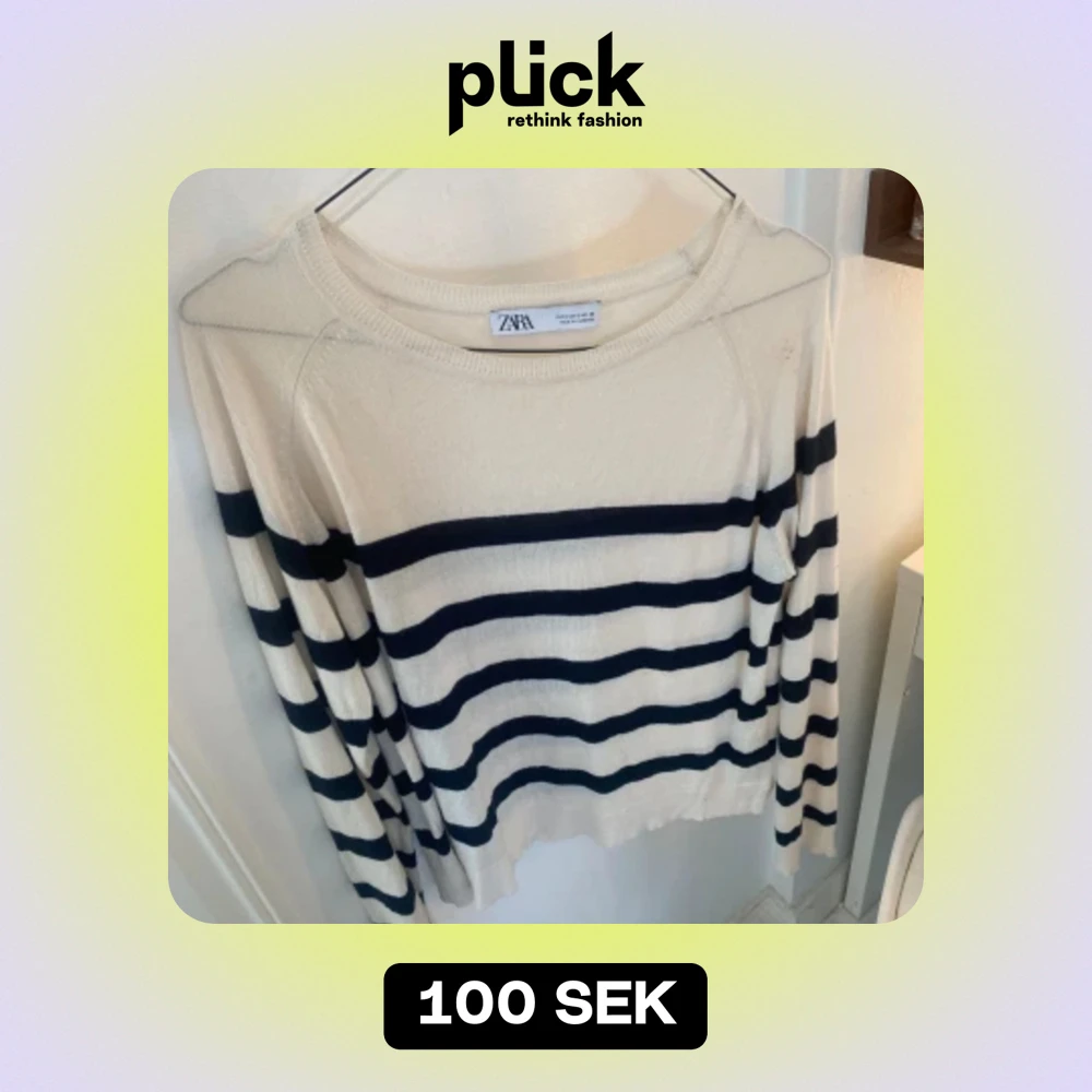 Säljer denna randiga tröja från Zara i tunnare matrial. Köpt förra året men sparsamt använd💕