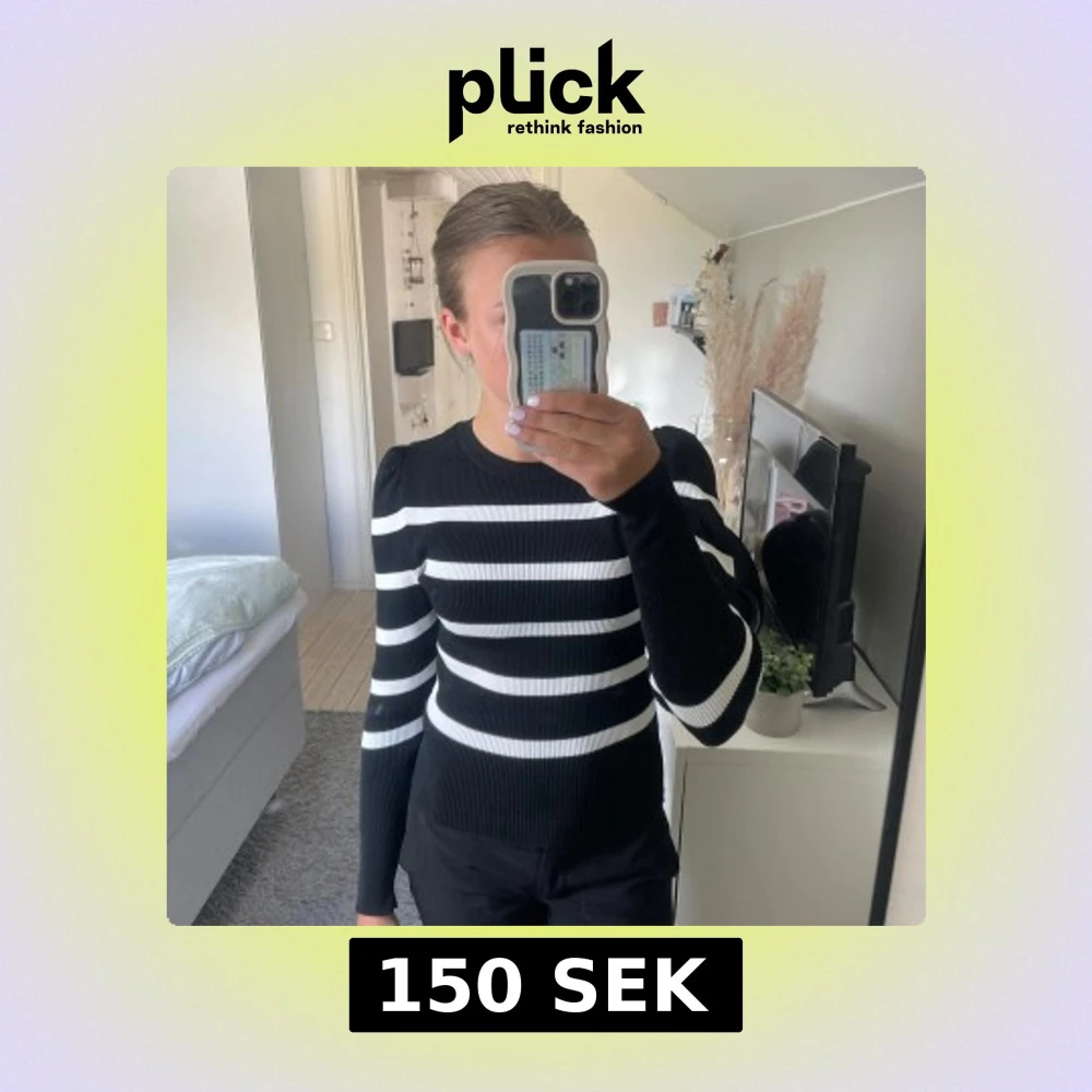 Säljer en svart och vit randig långärmad tröja. Tröjan har en slim passform och markerade axlar. Tröjan är även lite ribbad i materialet. Jag har bara använt tröjan några gånger. Ser ut som ny!