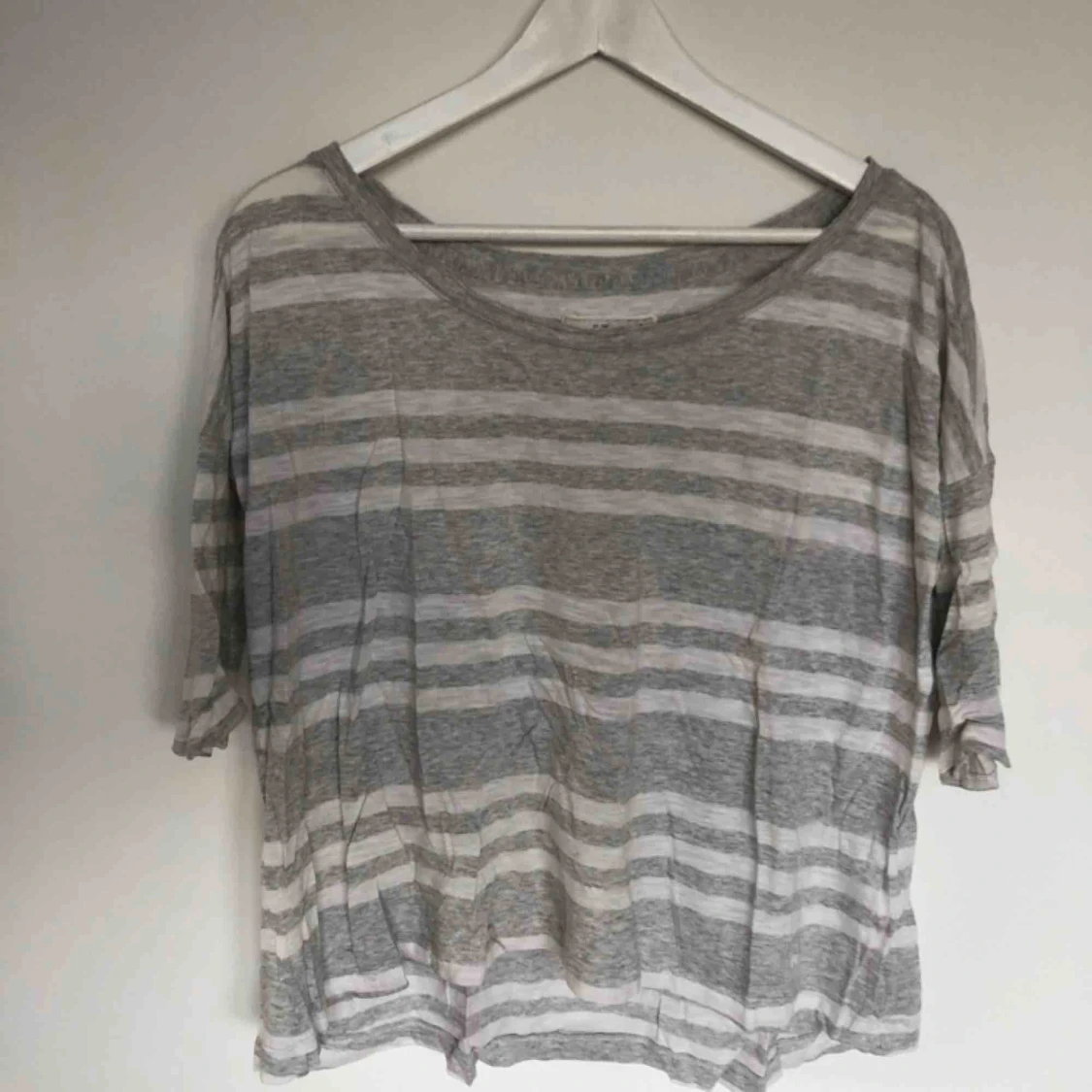 En vit- och grårandig tröja från Abercrombie & fitch i storlek S. Lite sliten i kragen som kan ses på bilden, men väldigt mysigt och luftigt material.