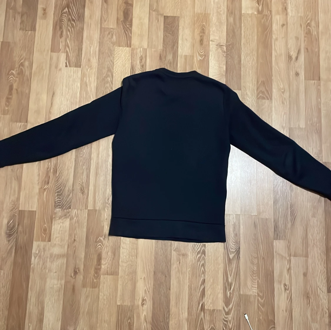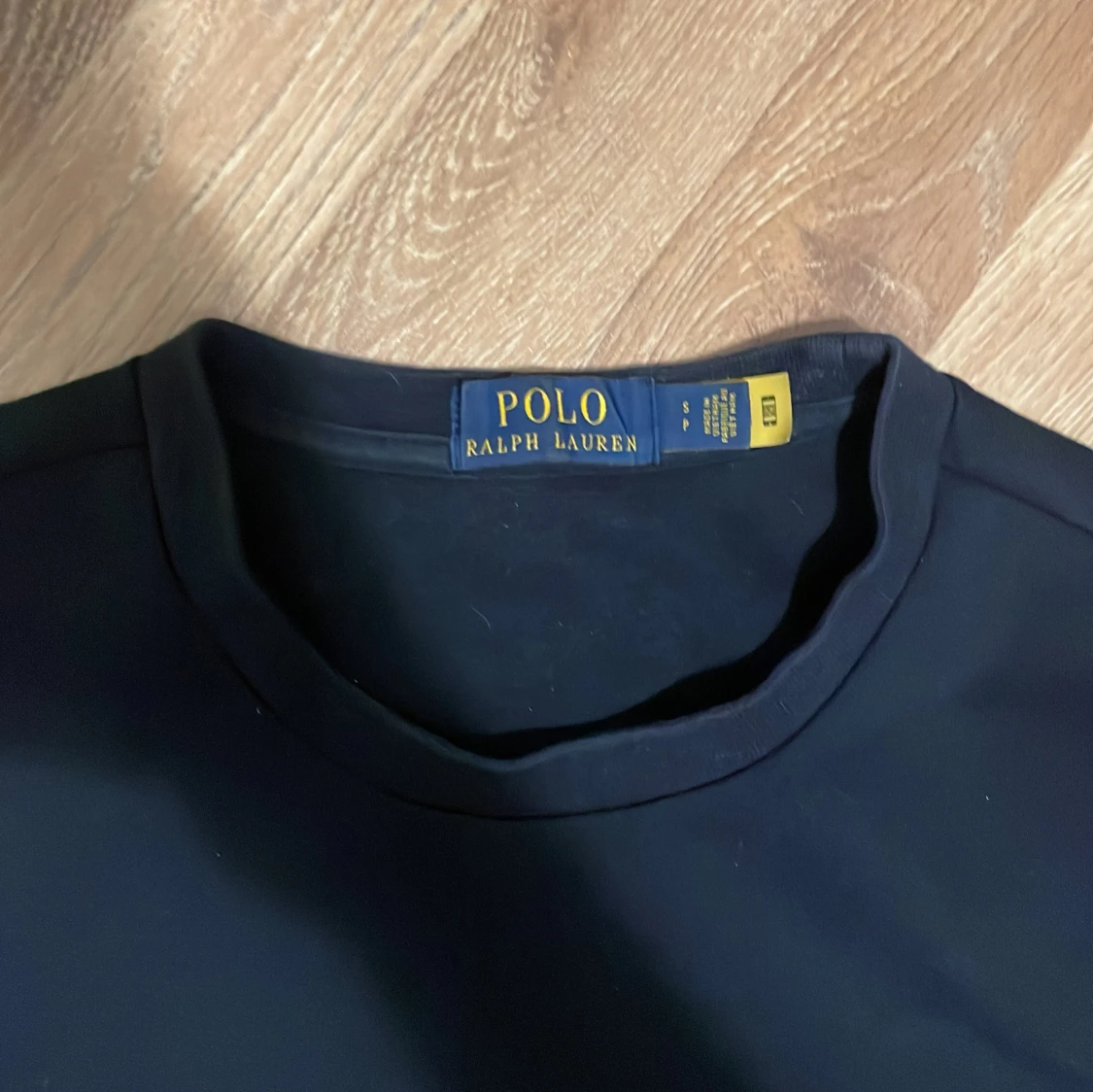 En stilren mörkblå sweatshirt från Polo Ralph Lauren med diskret logotyp i relief på bröstet. Tröjan har rund halsringning och långa ärmar, perfekt för en clean och klassisk. Väldigt prisvärd med tanke på skicket.