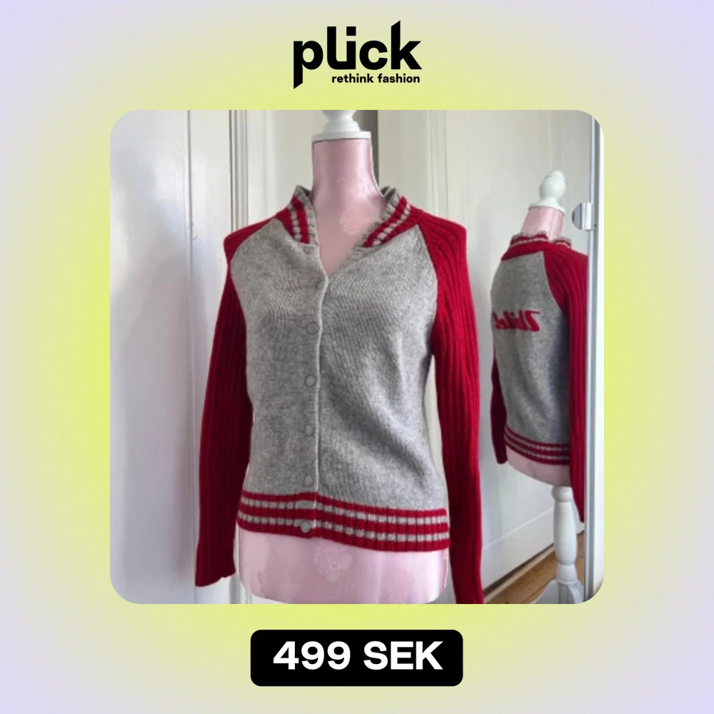 Kofta i ull med trycket ”United” på ryggen🩶❤️står inte storlek men sitter som en S