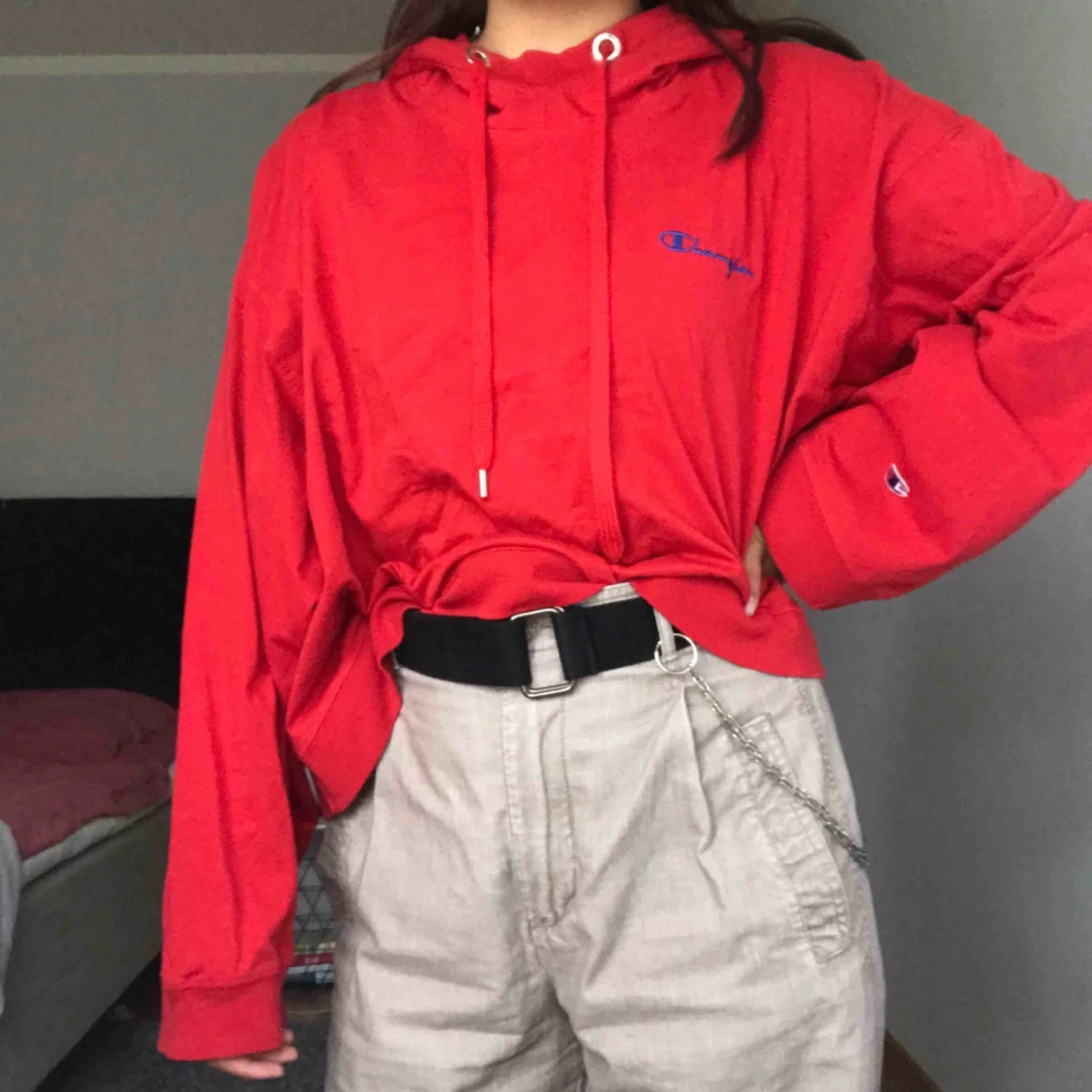 Medium size hoodie. Röd och i maglängd köpt från weekday. Originalpris 500, ostruken och använt ett flertal gånger!! möts i Stockholm (: