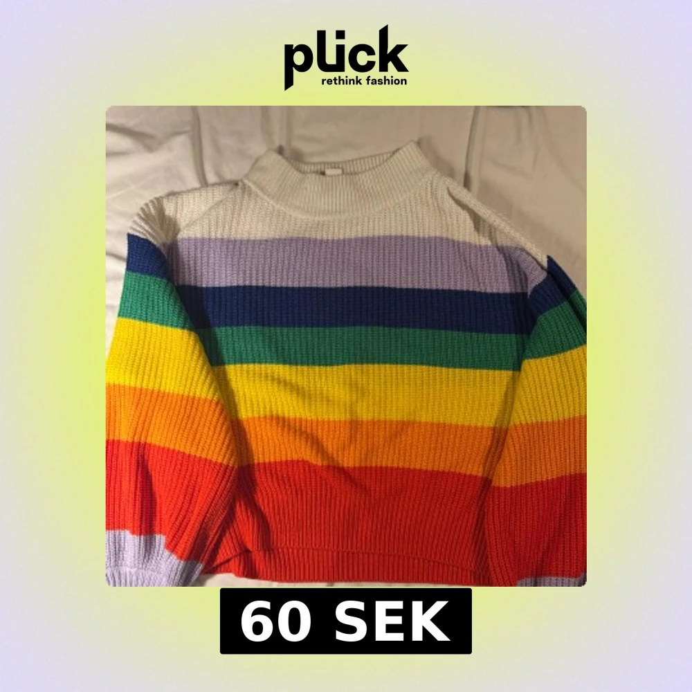 Tjocktröja i regnbågens färger från monki, storlek S men passar upp till L.