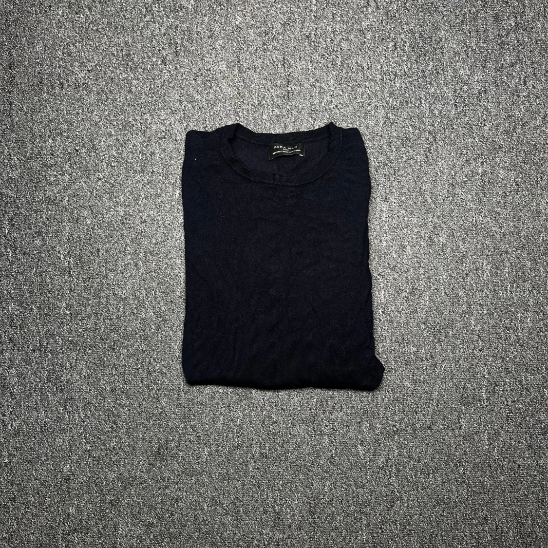 En stilren mörkblå stickad tröja från Zara Man. Klassisk rund halsringning och långa ärmar. Perfekt för lager-på-lager och funkar lika bra till jeans som till chinos. Enkel och tidlös design som passar till många olika outfits.