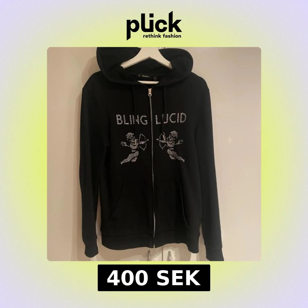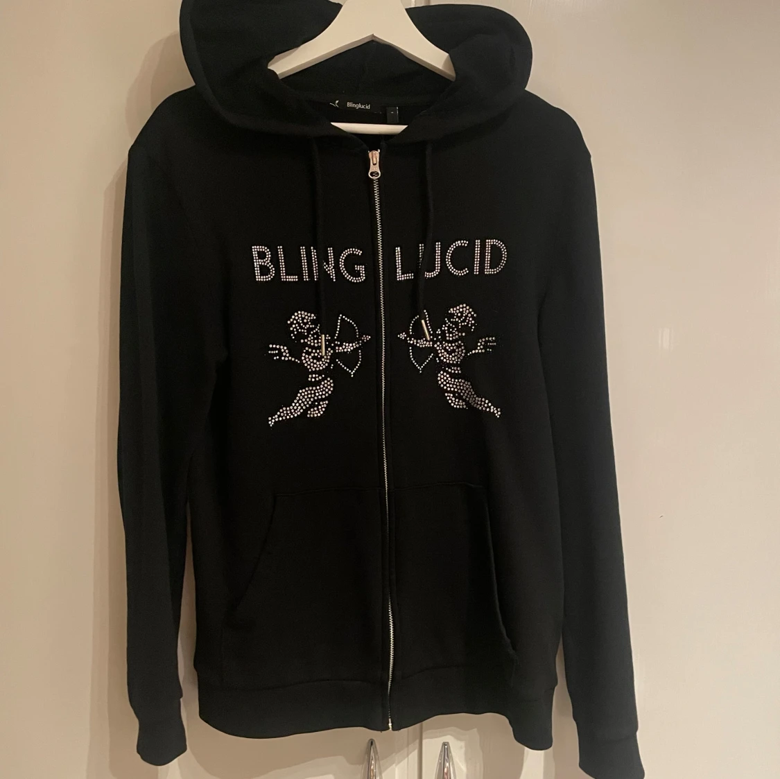 Snygg svart hoodie från Bling Lucid , Tröjan har en dragkedja och en luva, perfekt för en cool och avslappnad stil. Den har långa ärmar och är gjord i ett mjukt material.