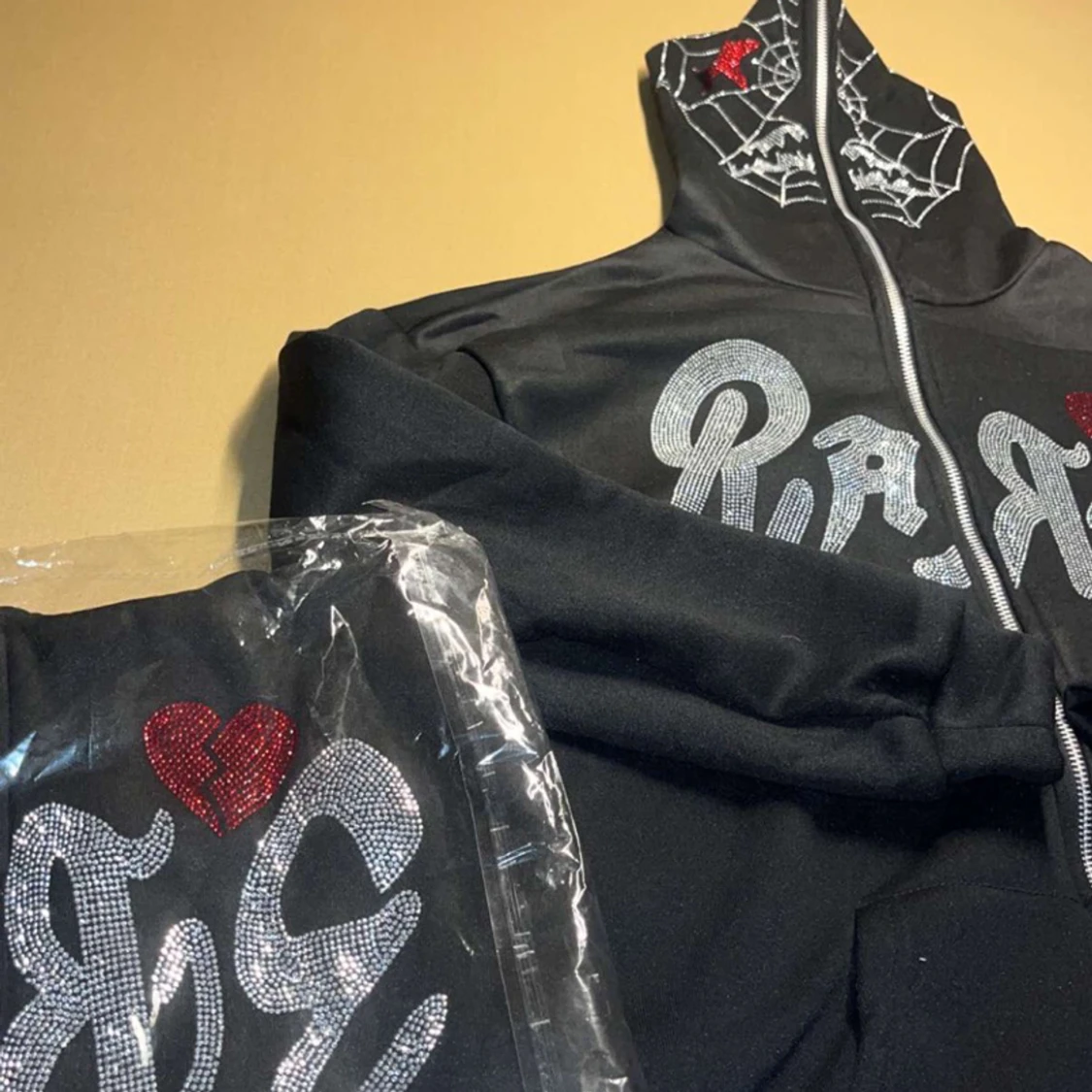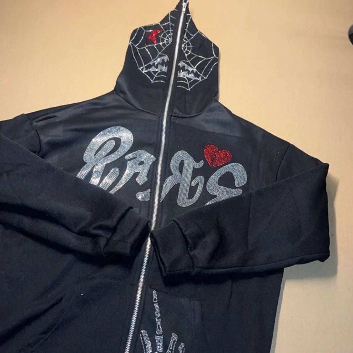 Fullzip rhinestone hoodie. Tvärfet. Storlek S och XS. Inga flaws alls helt nya.