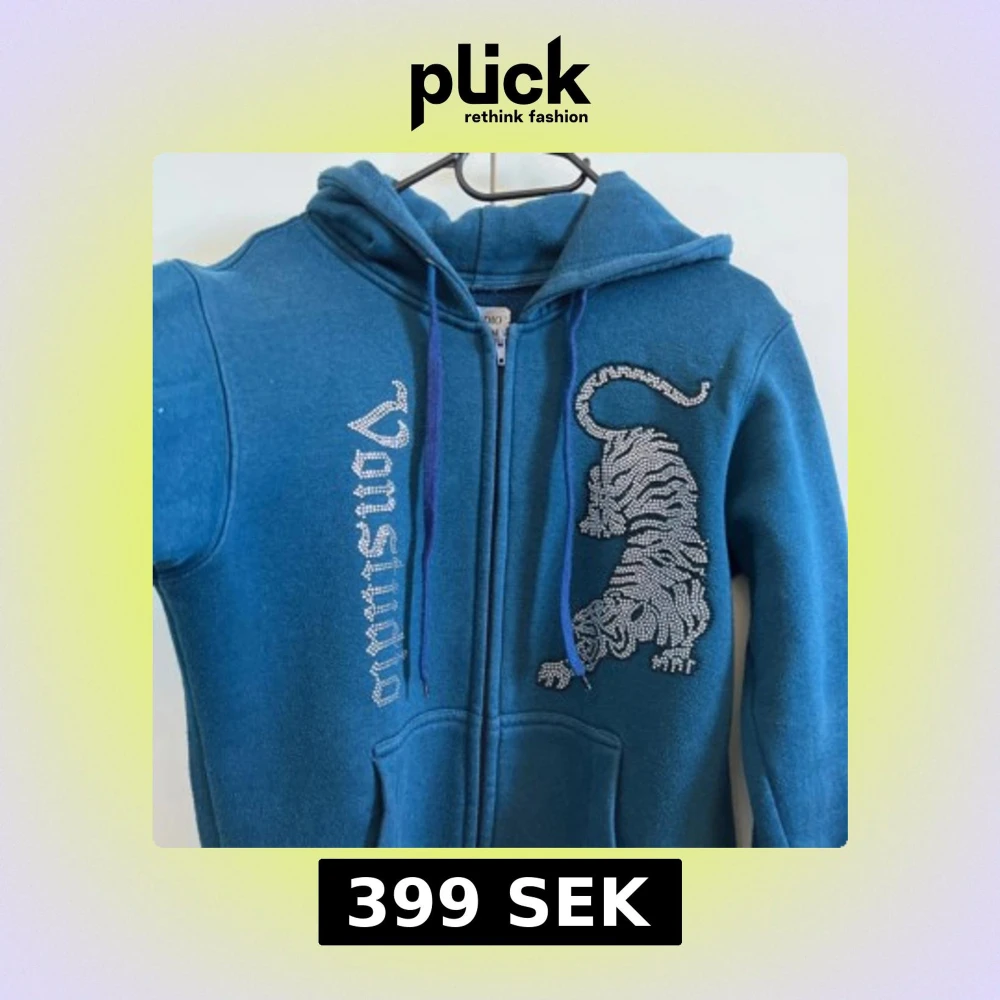 Snygg blå hoodie från Vansydical med en cool tigerdesign i strass på framsidan. Tröjan har dragkedja och justerbara snören i huvan. Perfekt för en avslappnad stil.