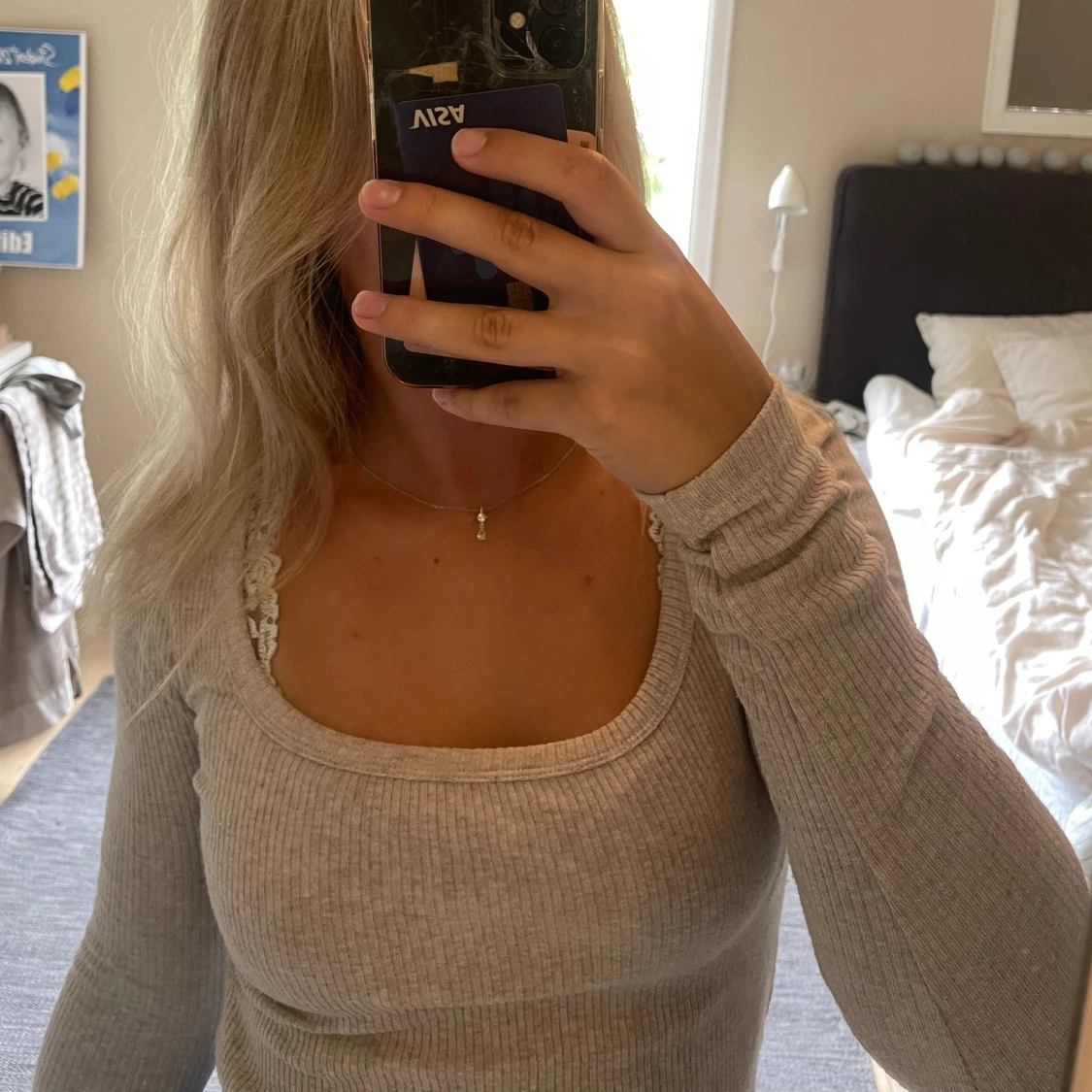 Jättesnygg beige ribbstickad tröja från hm💕 den är lite kortare i modellen!