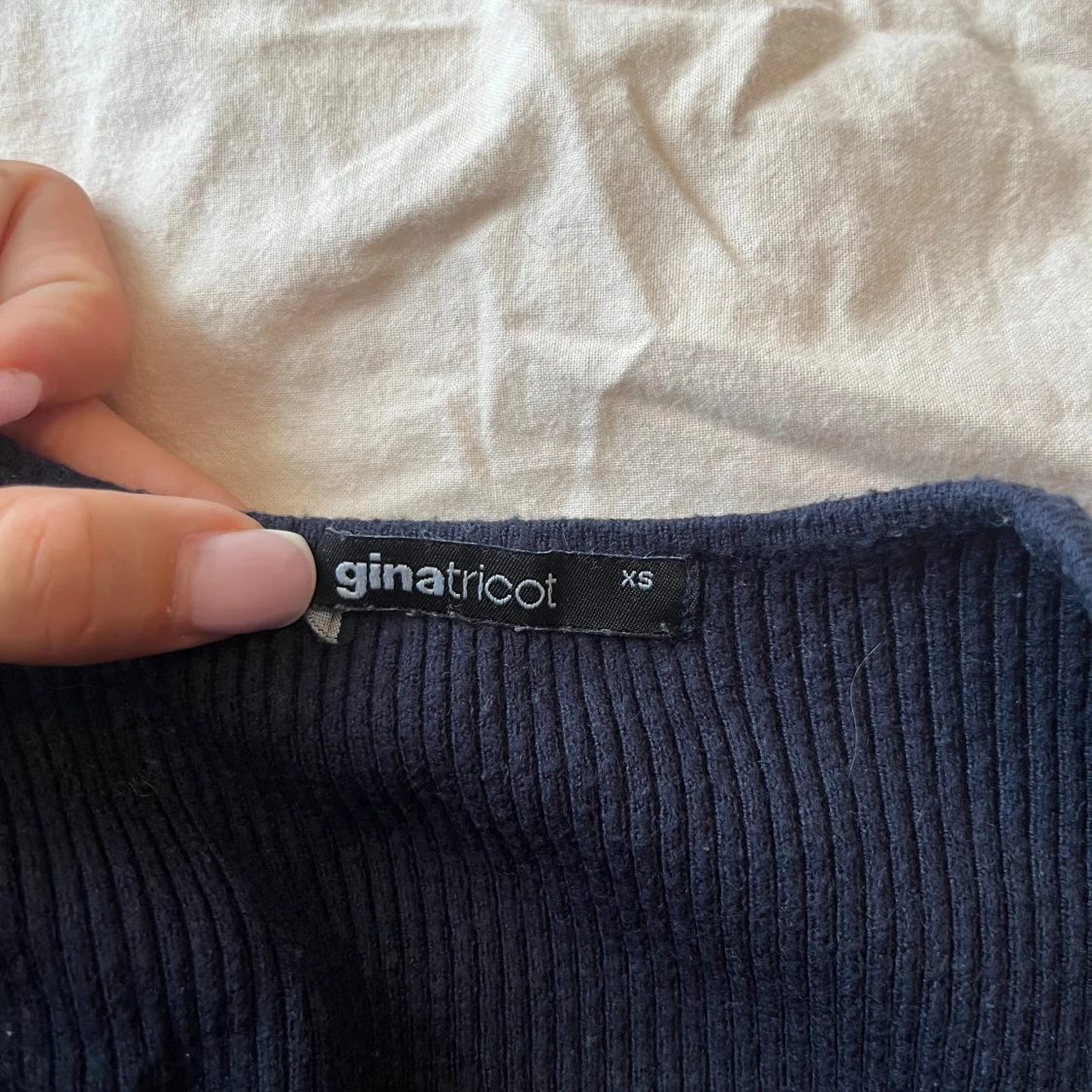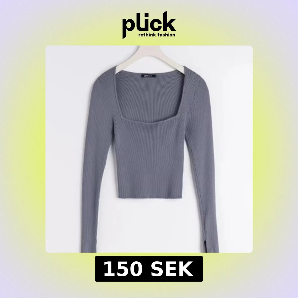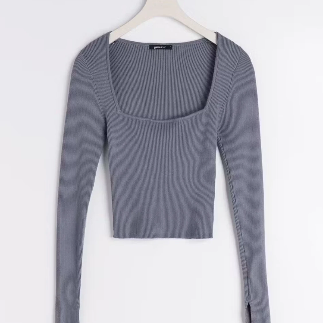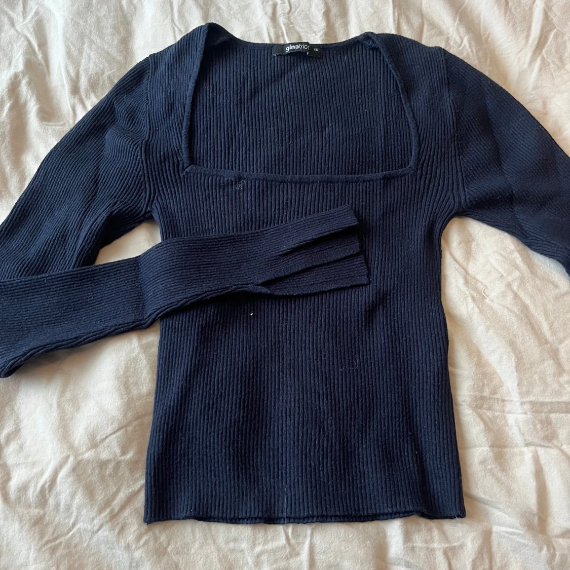 Supersnygg ribbad långärmad topp från Gina Tricot med fyrkantig urringning. Modellen är croppad och sitter tight. Färgen är mörkblå och materialet är mjuk stickad bomullsmix. Perfekt till jeans eller kjol för en trendig look. Säljer den mörkblåa för att förtydliga💕