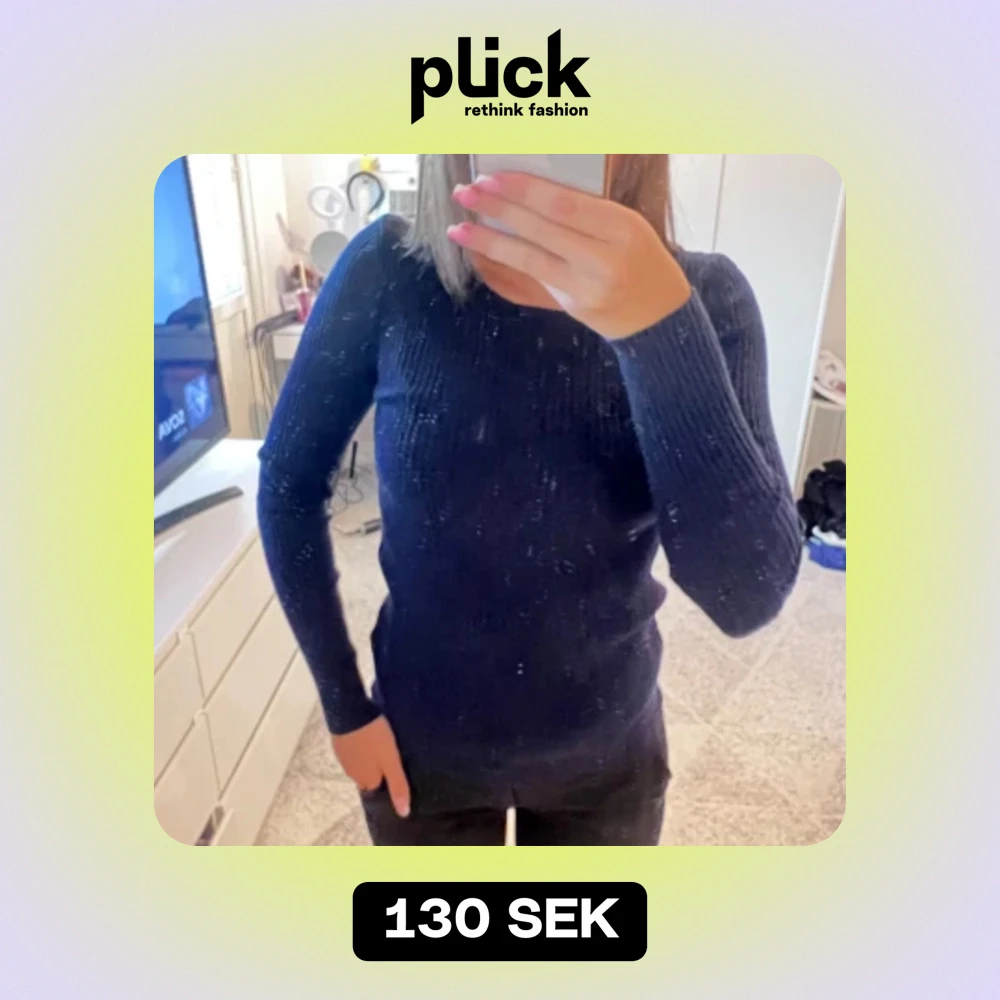 Gosig ribbad mörkblå tröja i storlek S/M. Tröjan är väldigt stretchig och därför passar den både som en S och en M. Använd bara några gånger och därför är toppen skick