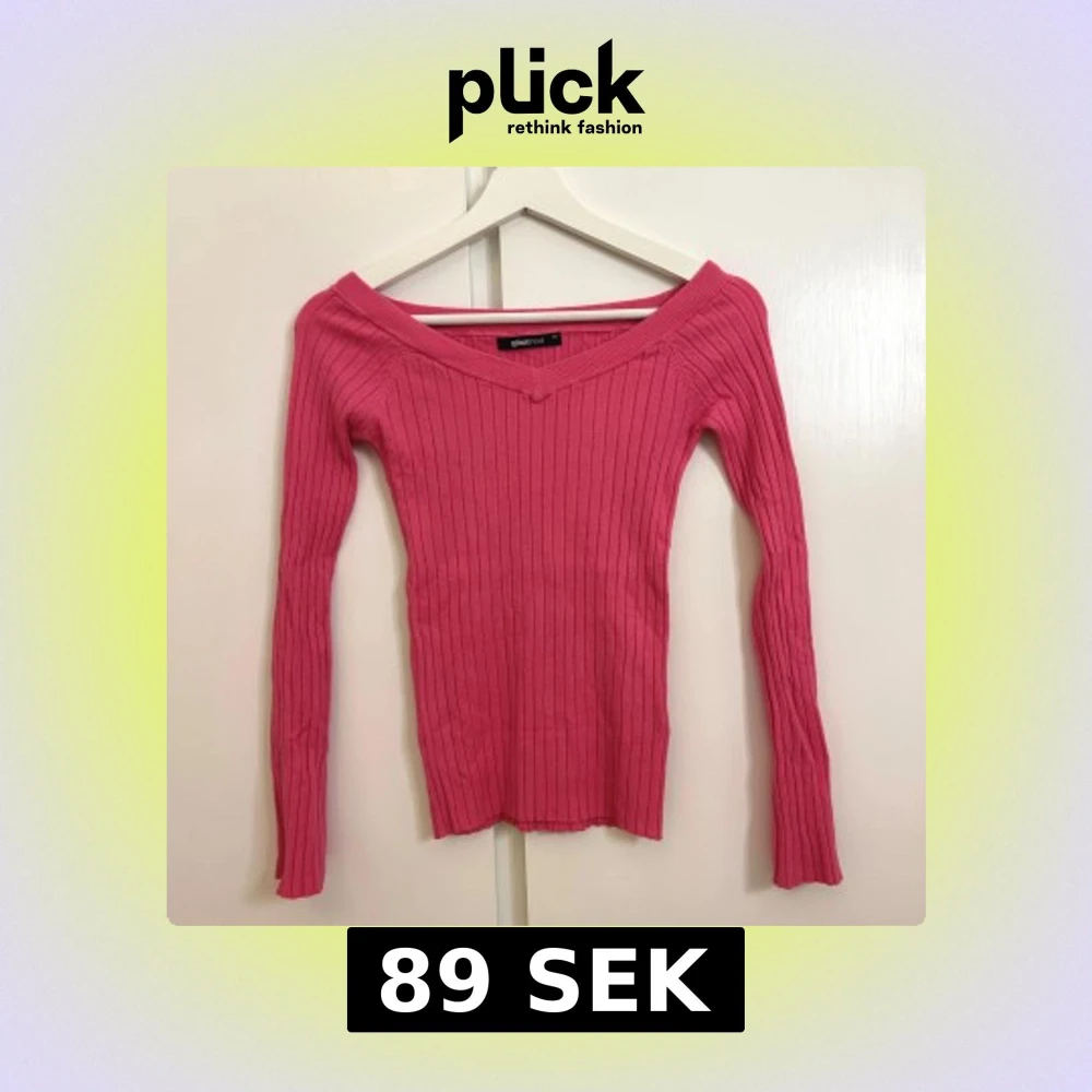 Säljer en snygg rosa ribbad tröja från Gina Tricot. Tröjan är långärmad och tight i passformen, offshoulder och v-ringad hals. Bra skick och storlek S.