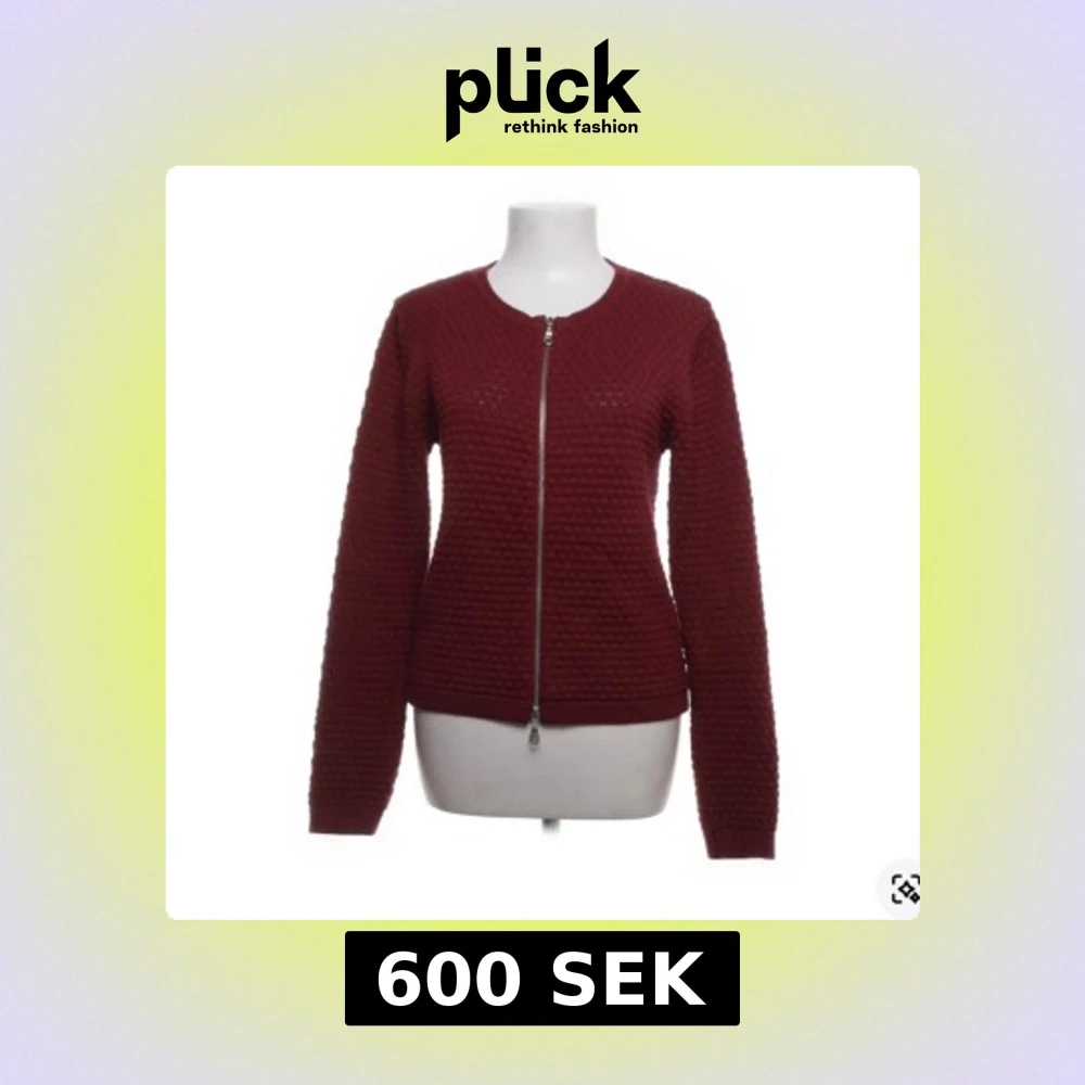 Snygg vinröd stickad kofta från Sibin Linnebjerg med dragkedja fram till. Passar både S och M