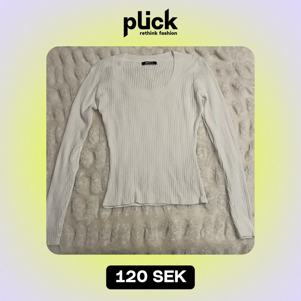 Vit ribbad tröja från Gina Tricot i storlek S. Använd en gång!! Väldigt skönt material och även stretchigt så skulle lika gärna kunna passa en M.