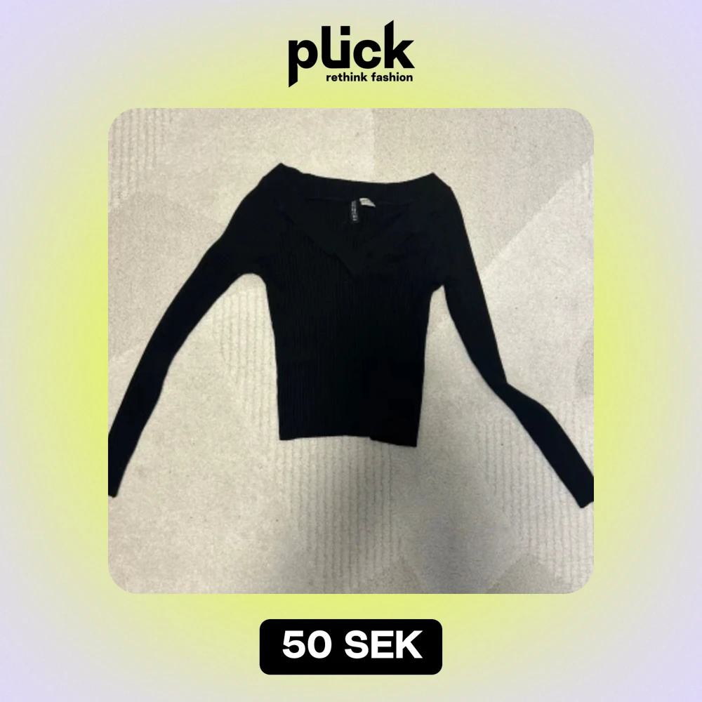 Svart ribbad tröja med en V ringning. Kortare i modell. Storlek S