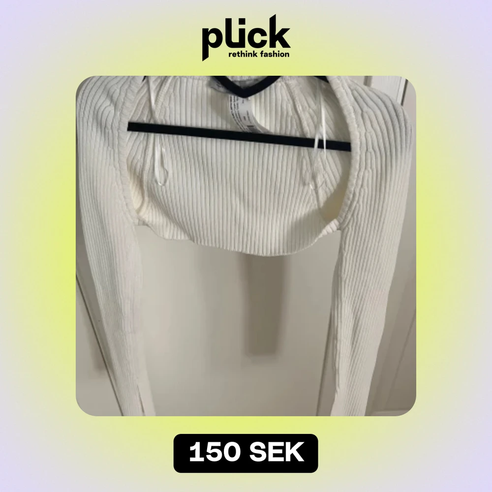 Vit ribbstickad bolero med slits vid händerna från chiquelle, storlek S. Nyskick, helt oanvänd.