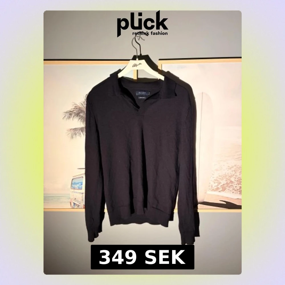 Svart polotröja från Riley med klassisk krage och v-ringad öppning. Tröjan är långärmad och har ribbade muddar vid ärmslut och nederkant. Tillverkad i mjukt bomullsmaterial som känns skönt mot huden. Perfekt för dig som gillar stilrena och enkla plagg.