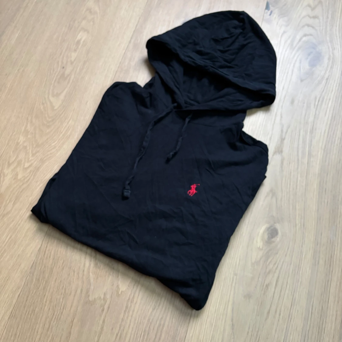 Tja! Säljer en skön Ralph Lauren Hoodie i T-shirt material. Svart storlek S riktigt skön passform. Lite skrynklig kanske men annars som ny. Hör av dig vid frågor eller liknande✌️