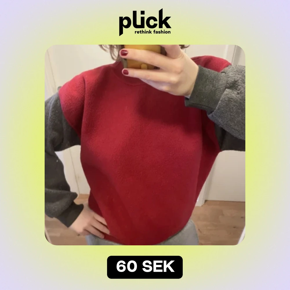 Röd tjocktröja med gråa ärmar