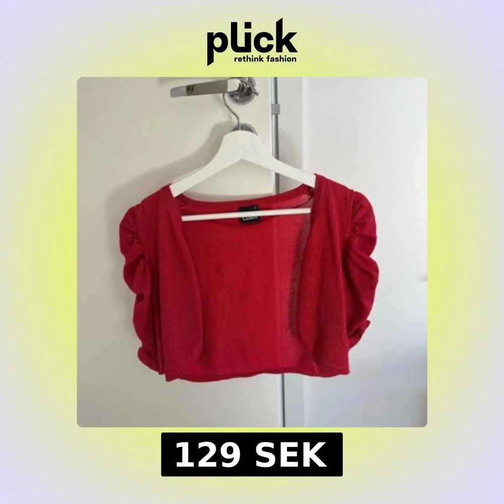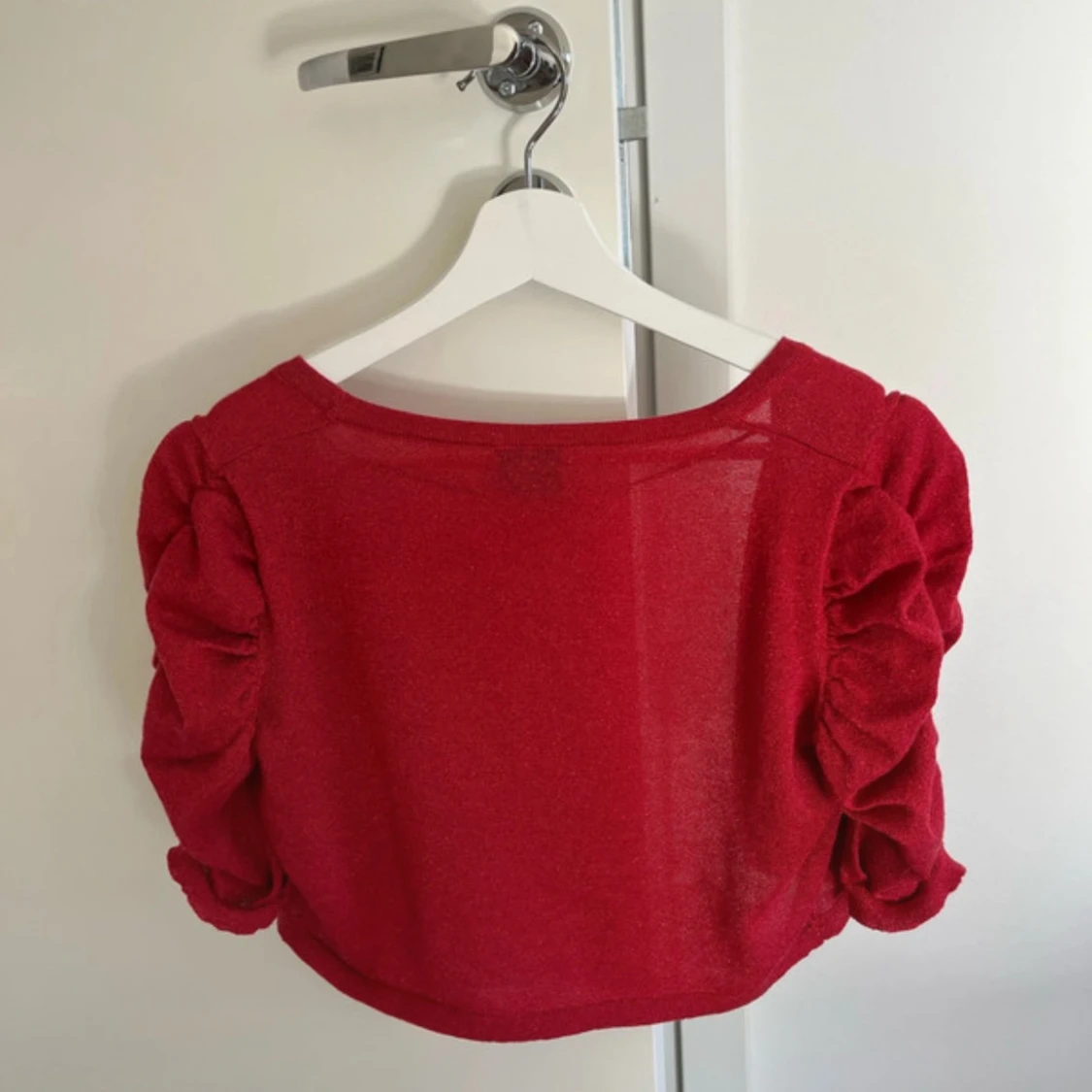 En röd glittrig bolero i strl S (passar som M oxå). Mycket bra skick!