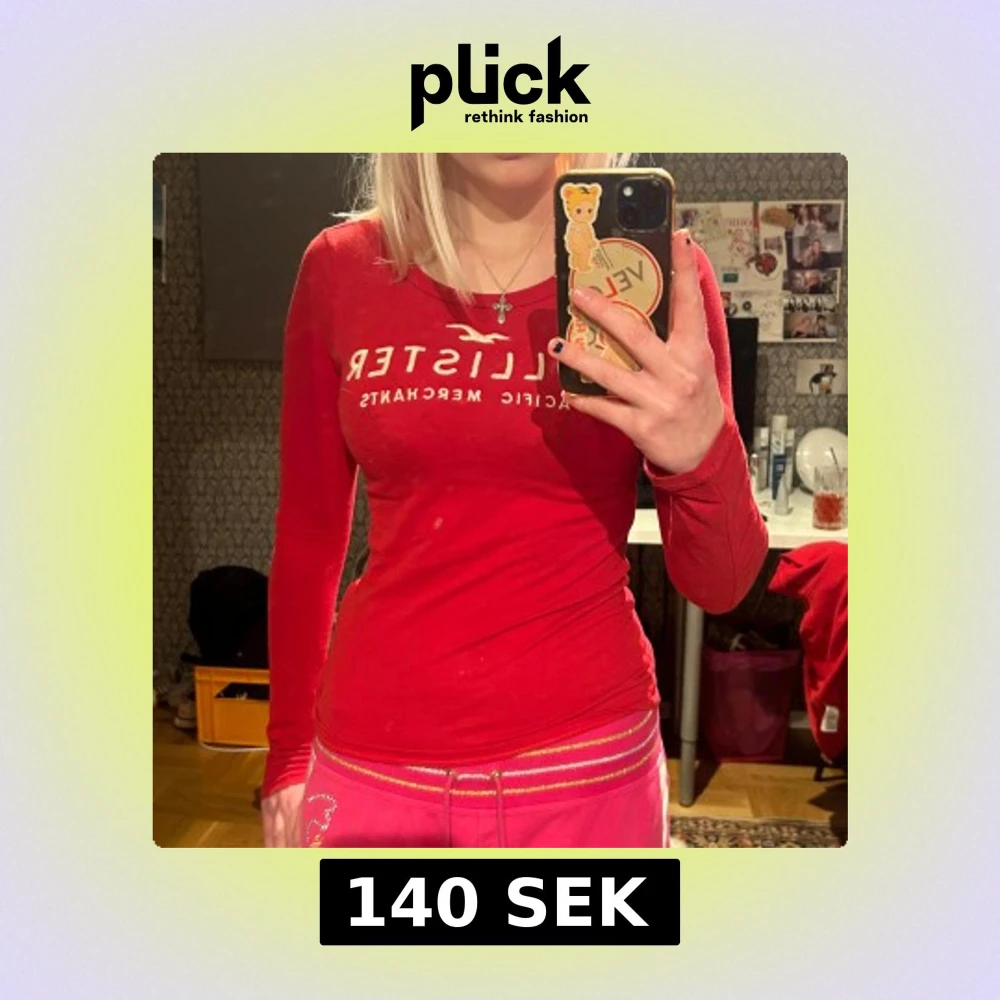 Super snygg långärmad tröja från Hollister med tryck på framsidan. Den har ett jätte litet hål på höger ärmen (se sista bilden).