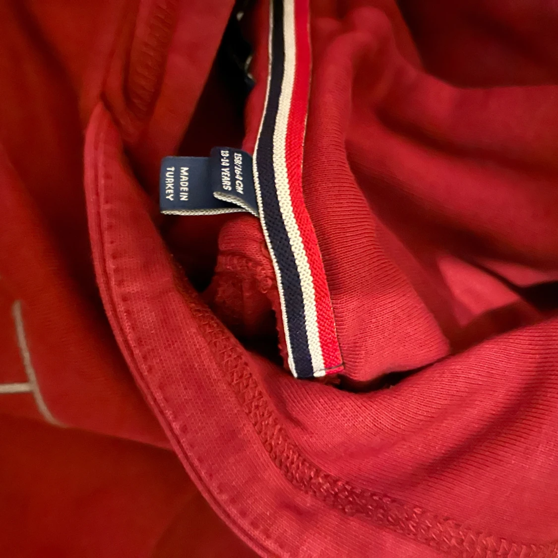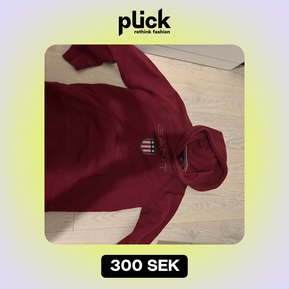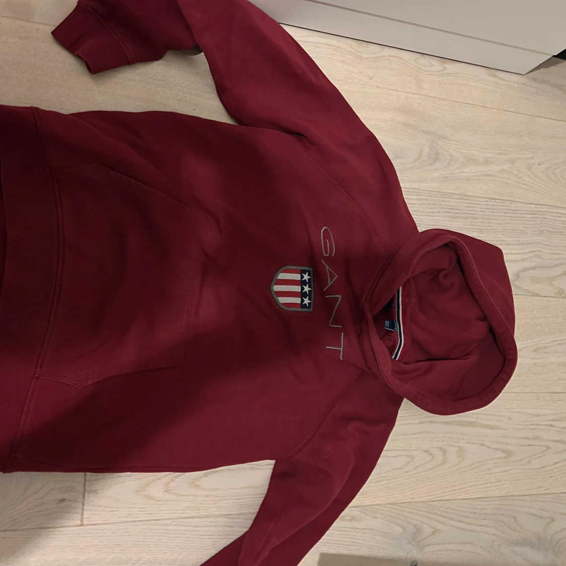 Snygg röd hoodie från GANT med logga och emblem på bröstet. Perfekt för en avslappnad stil med en klassisk touch.