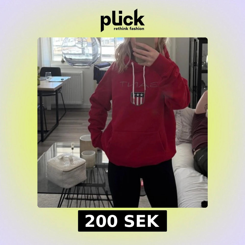 Röd gant hoddie i storlek L. Köpt på herr avdelningen. Pris kan diskuteras