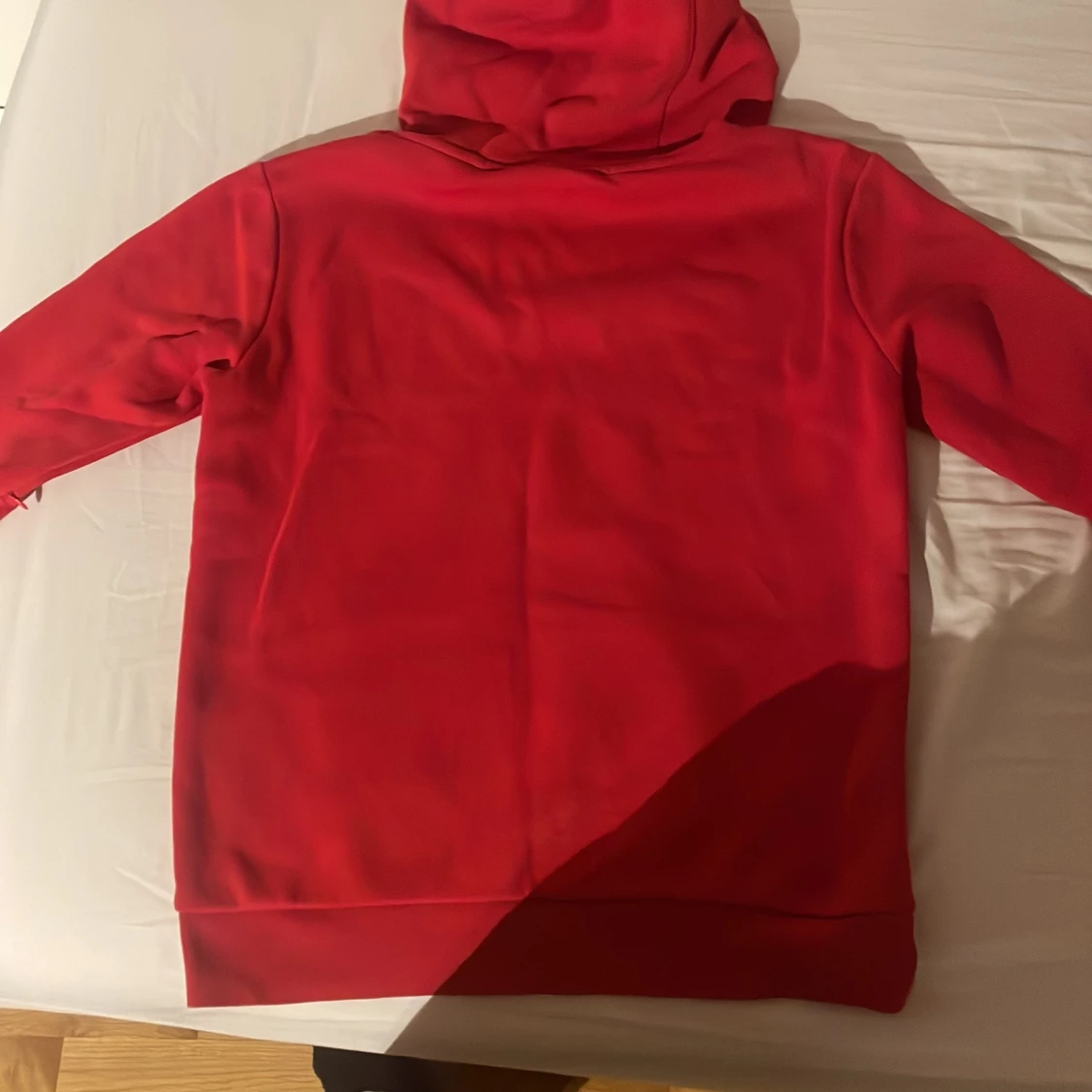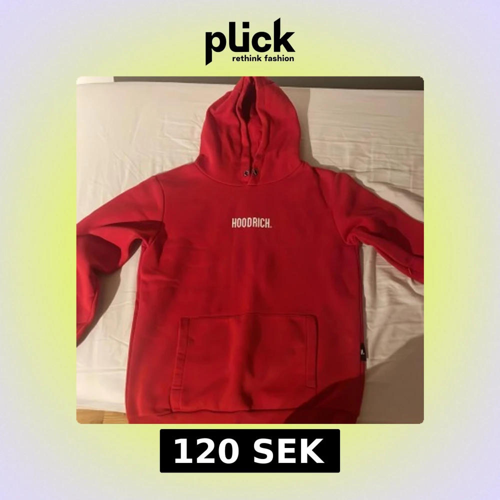 Röd hoodie från Hoodrich med vit logga på bröstet. Klassisk känguruficka framtill, huva med snörning och långa ärmar. Perfekt för dig som gillar streetwear och vill sticka ut med en färgstark look.