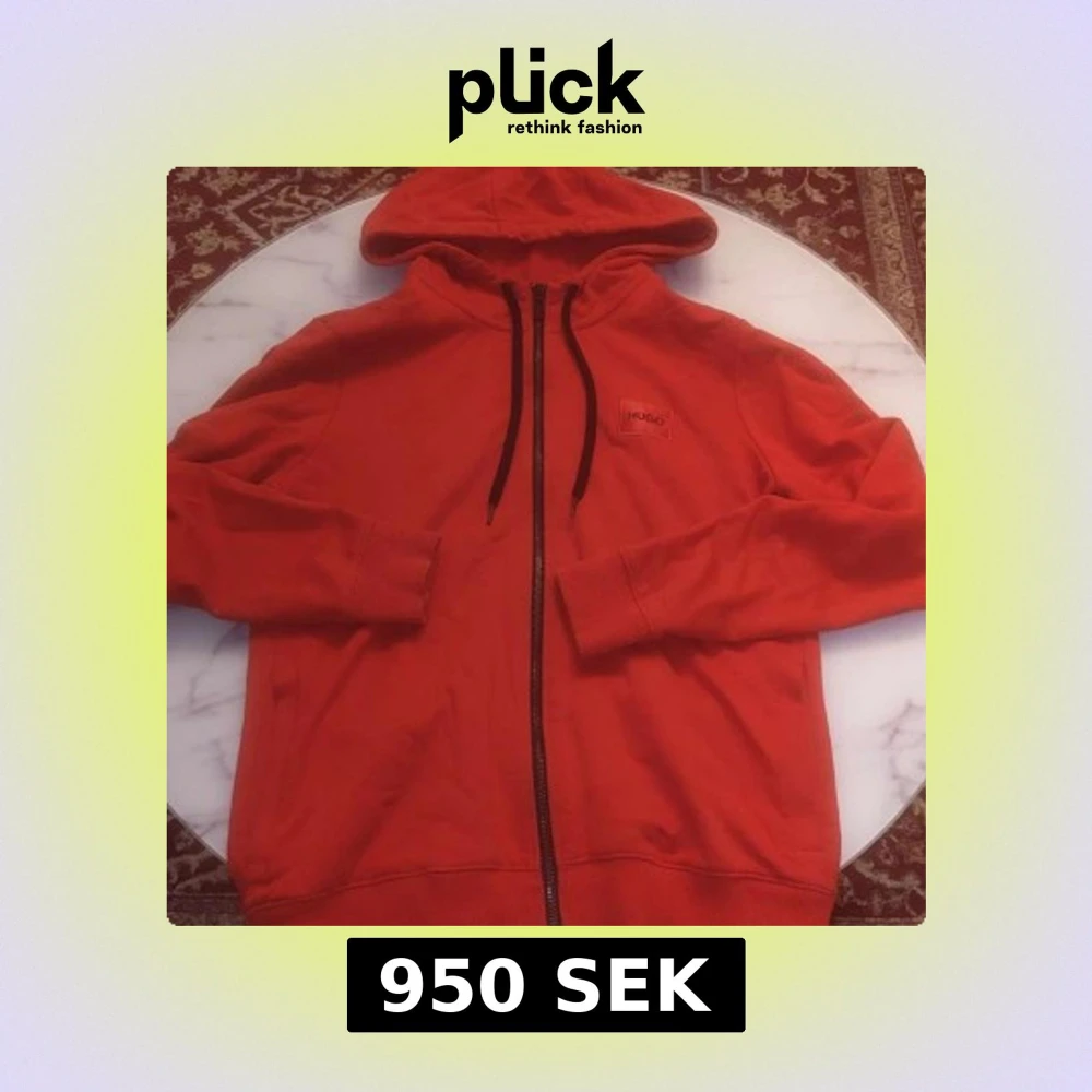 Säljer en snygg röd hoodie från Hugo Boss med dragkedja och justerbar huva. Perfekt för en casual look med stil. Den har en liten Hugo-logga på bröstet och ribbade muddar vid ärmslut och nederkant.