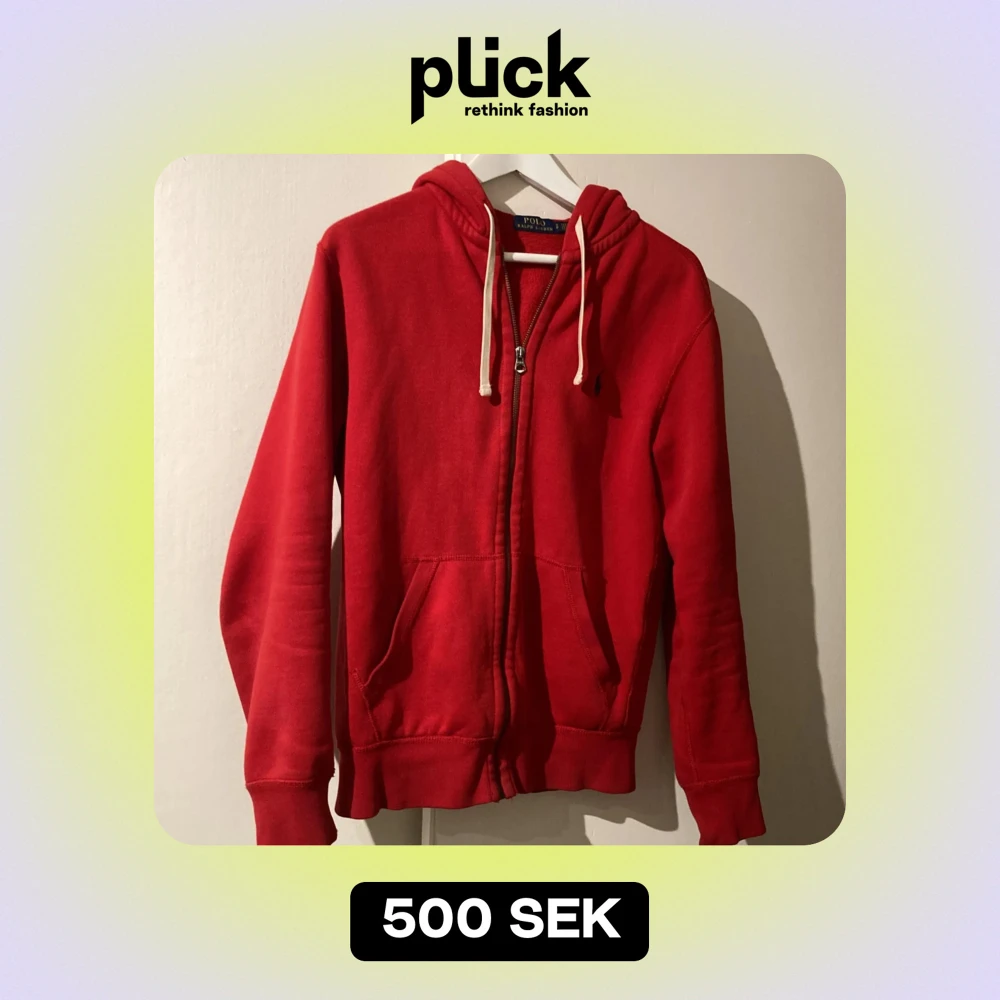 Säljer en snygg röd hoodie från Polo Ralph Lauren i ganska bra skick. Den har en dragkedja framtill och en klassisk logga broderad på bröstet. Perfekt för höst och vår, med långa ärmar och en skön passform. Huvan har vita snören för justering. Passar både till vardags och chill. Om den är för lite åker dragkedjan ner lite när man har luvan på