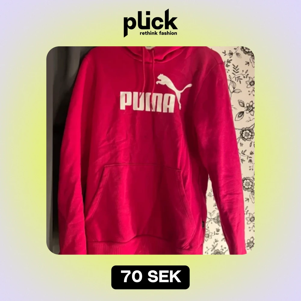 Säljer en snygg röd hoodie från Puma. Den är i storlek S och har en stor vit Puma-logga på bröstet. Hoodien har en stor ficka på magen och en justerbar huva med snören. Perfekt för höst och vinter, superbekväm och stilren! 🐾