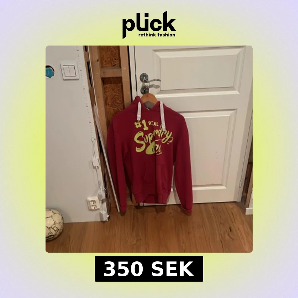 Röd hoodie från Superdry med stort gult tryck på bröstet och vita snören i huvan. Klassisk känguruficka framtill och mjukt material som känns skönt mot huden. Perfekt för dig som gillar streetstyle och vill sticka ut lite extra.