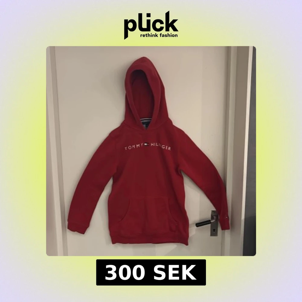 Röd hoodie från Tommy Hilfiger i storlek XL. Klassisk modell med huva, magficka och logga tryckt över bröstet. Mjuk insida och ribbade muddar. Perfekt för dig som gillar streetwear och vill ha en snygg och enkel look.