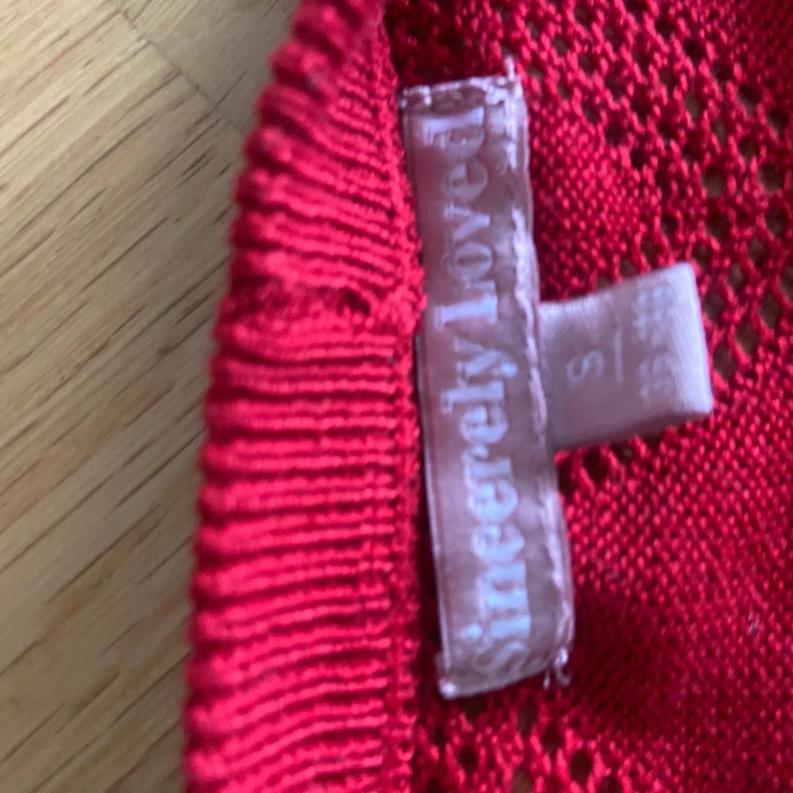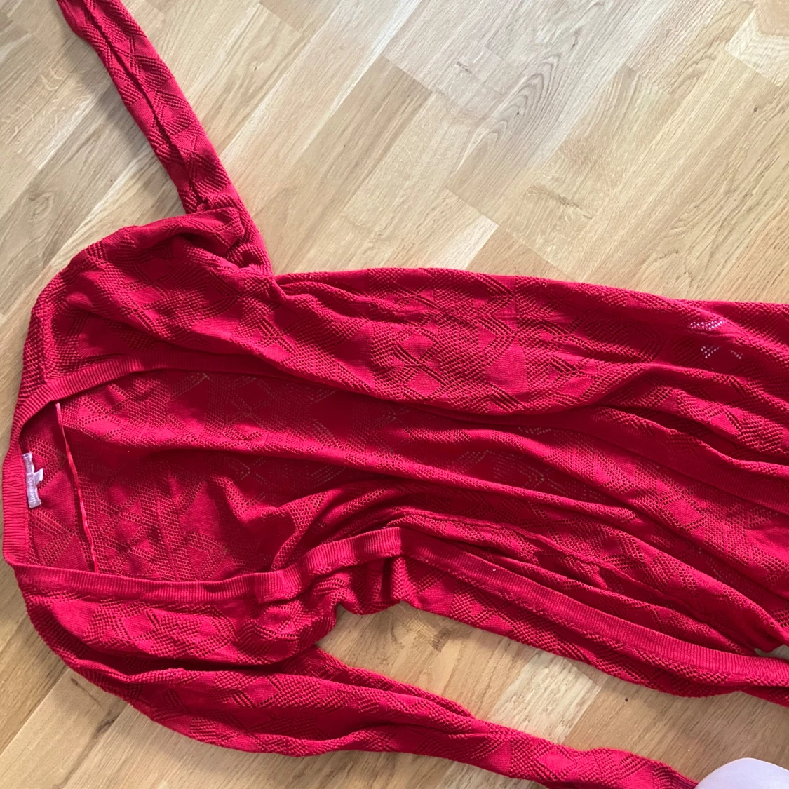 Röd lång kofta i ett lätt och luftigt material. Storlek S