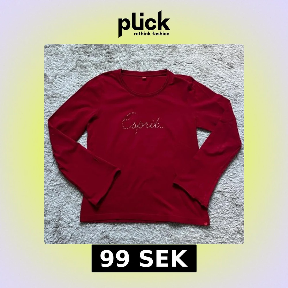 Snygg röd långärmad tröja från Esprit med glittrande stenar som bildar loggan på bröstet. Har aningen vidare öppning kring handlederna. Tröjan har rund halsringning och är gjord i mjuk bomull, perfekt för dig som gillar enkel men stilren design.