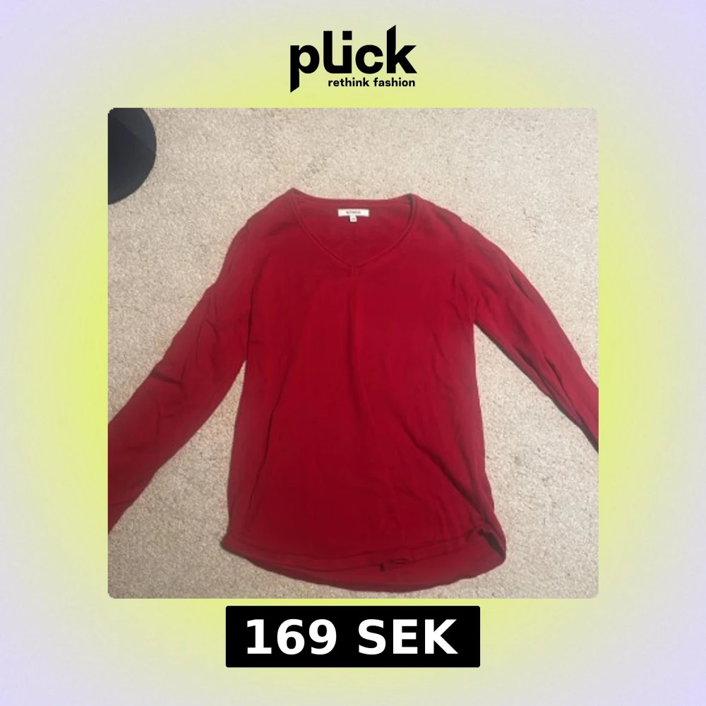 Säljer en enkel och snygg röd långärmad tröja. Tröjan har v-ringad hals och är i ett mjukt bomullsmaterial. Perfekt för dig som gillar en klassisk och stilren look.