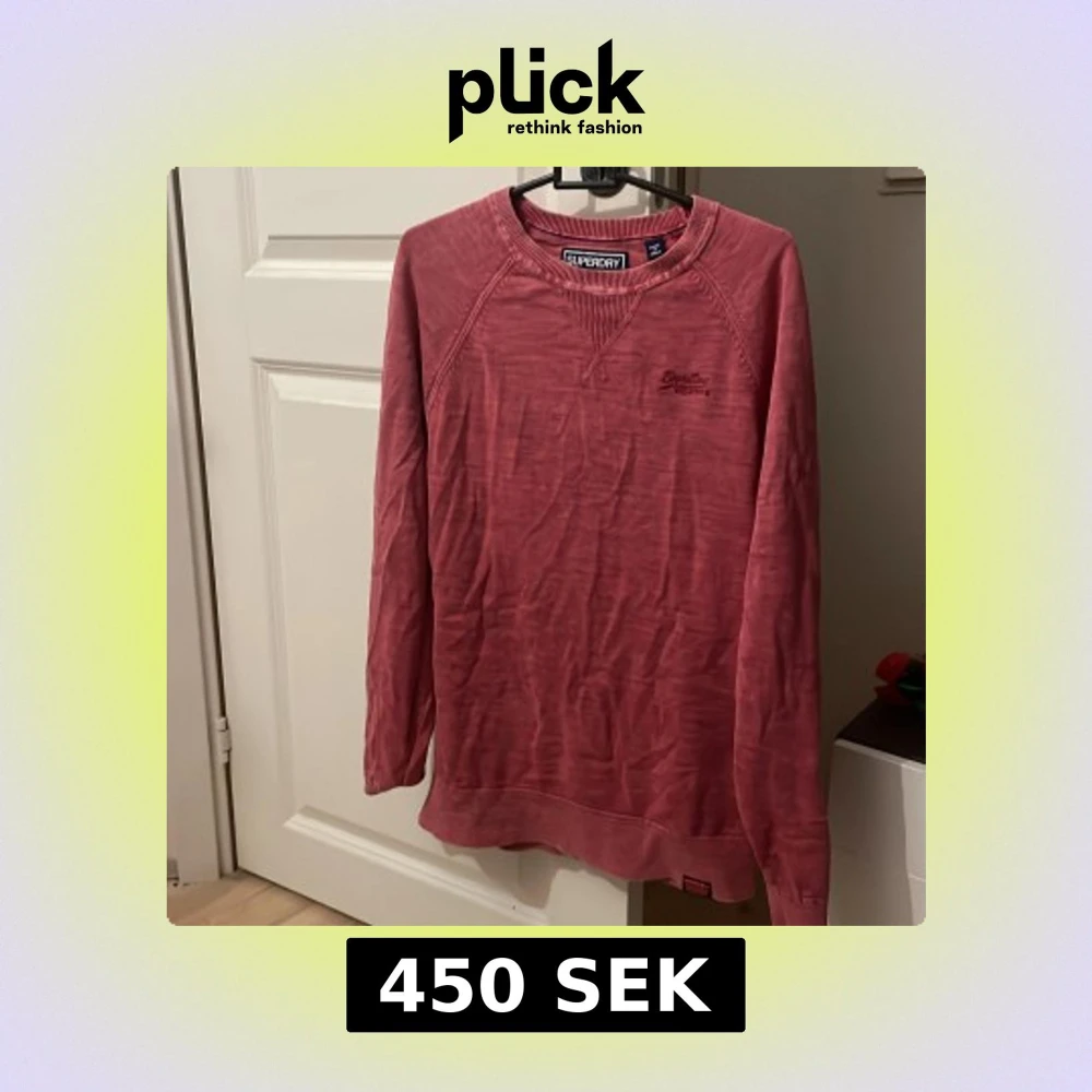 Säljer en röd långärmad tröja från Superdry i storlek medium. Tröjan har rund halsringning med ribbade detaljer och broderad Superdry-logga på bröstet. Skön och avslappnad passform, perfekt för lager-på-lager-stil.