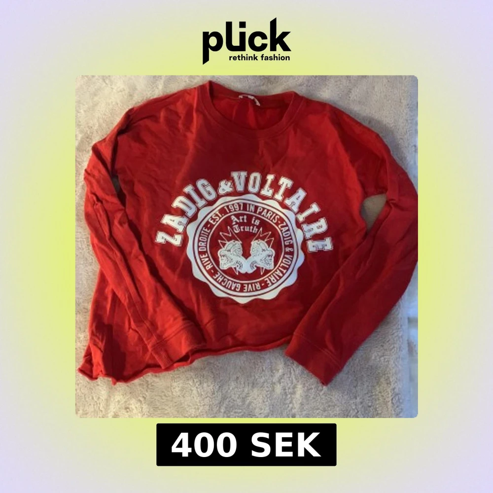 Snygg röd långärmad tröja från Zadig & Voltaire med stort tryck framtill. Perfekt för en avslappnad stil med en touch av rock'n'roll. Tröjan har en rund halsringning och är tillverkad i mjukt material.❤️
