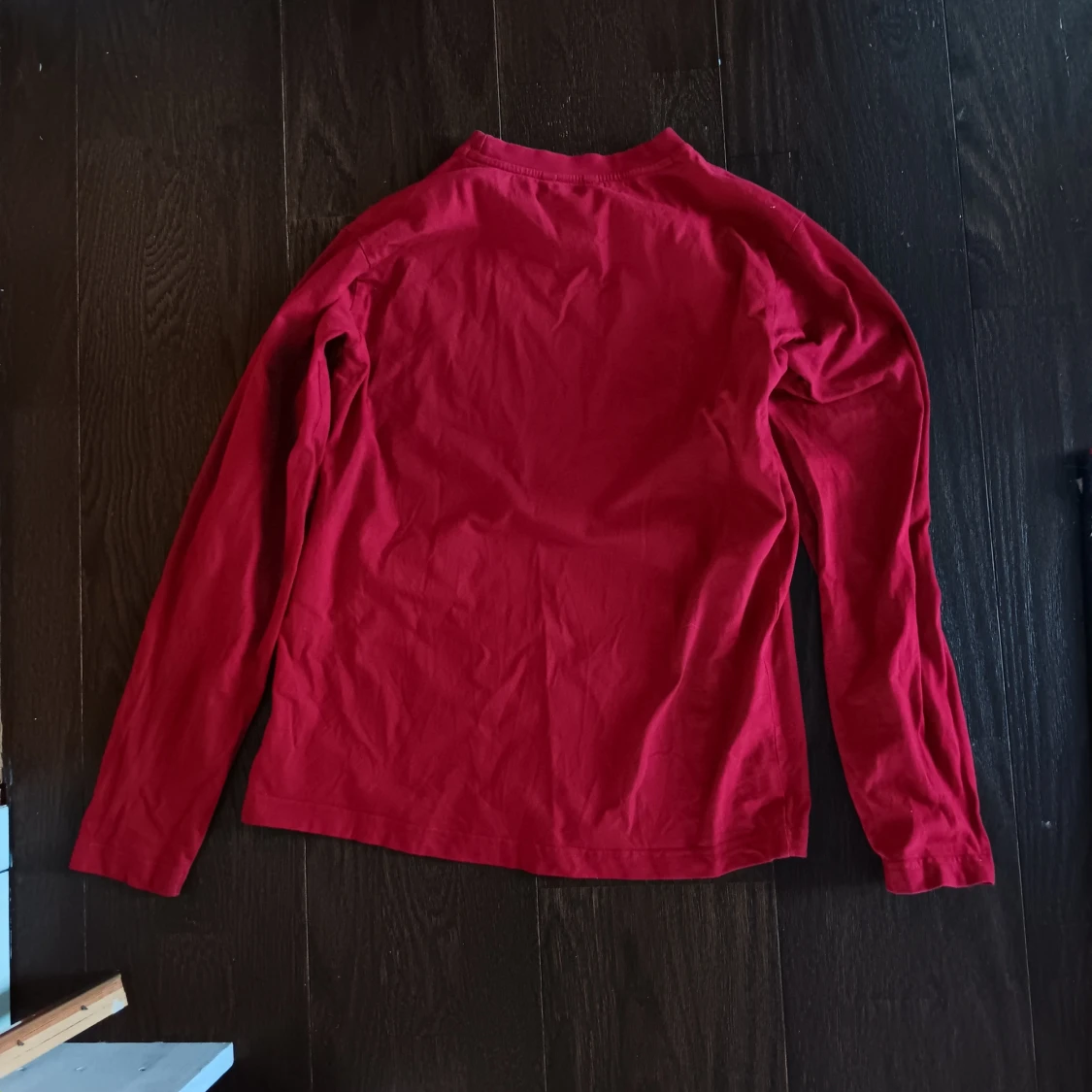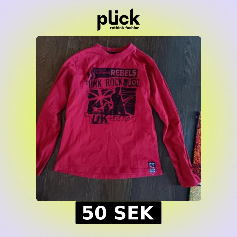 Säljer en cool röd långärmad tröja med tryck av punkmotiv. Är oxå mörkare röd än vad som syns på bilerna. Storlek ca S. Säljer pga passar ej mig som jag skulle önska. Tröjan har en rundad hals och är i en avslappnad passform.