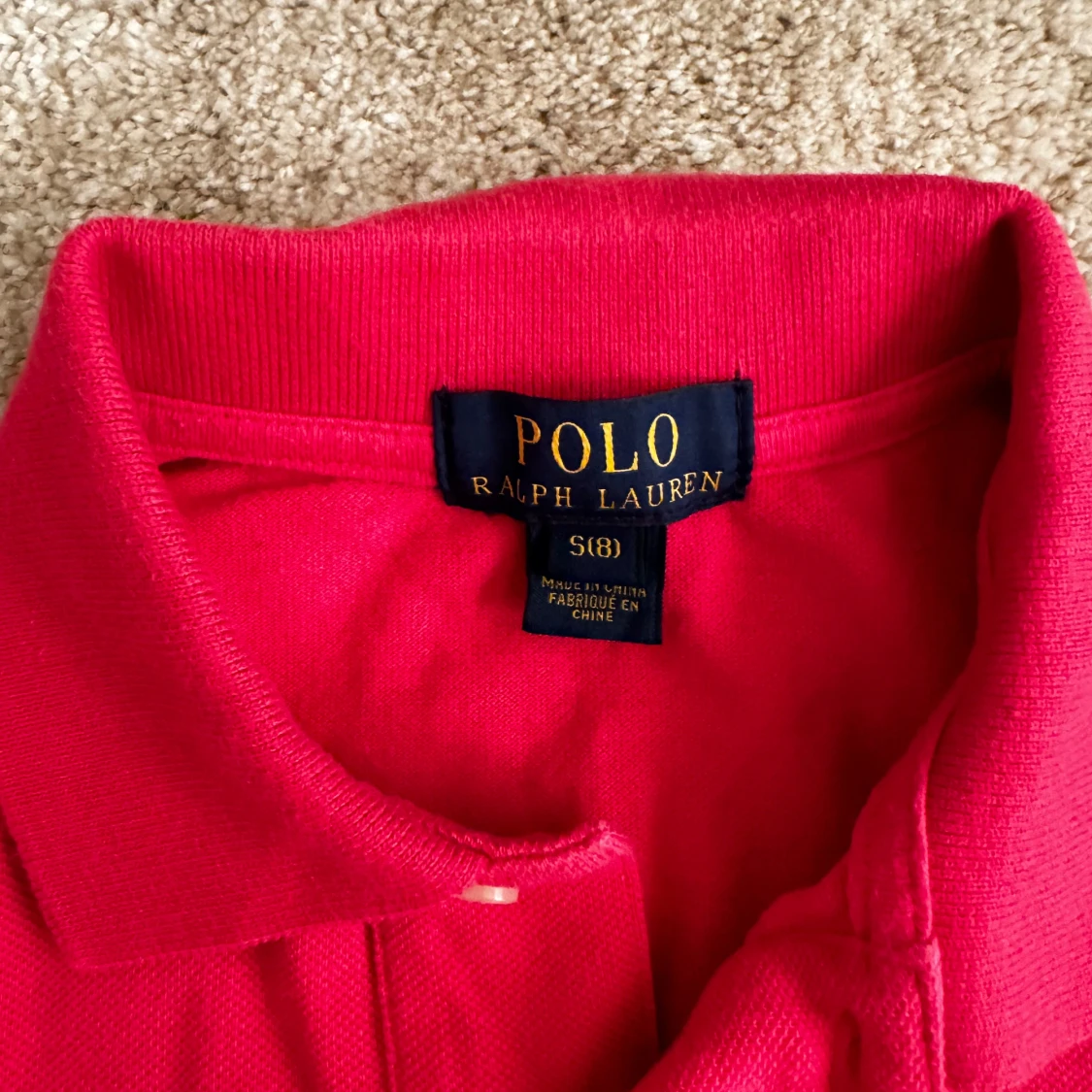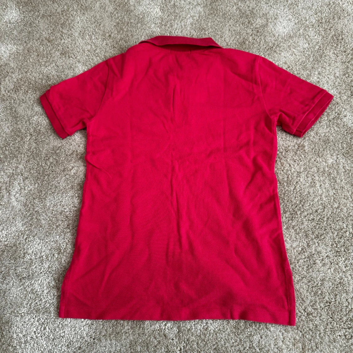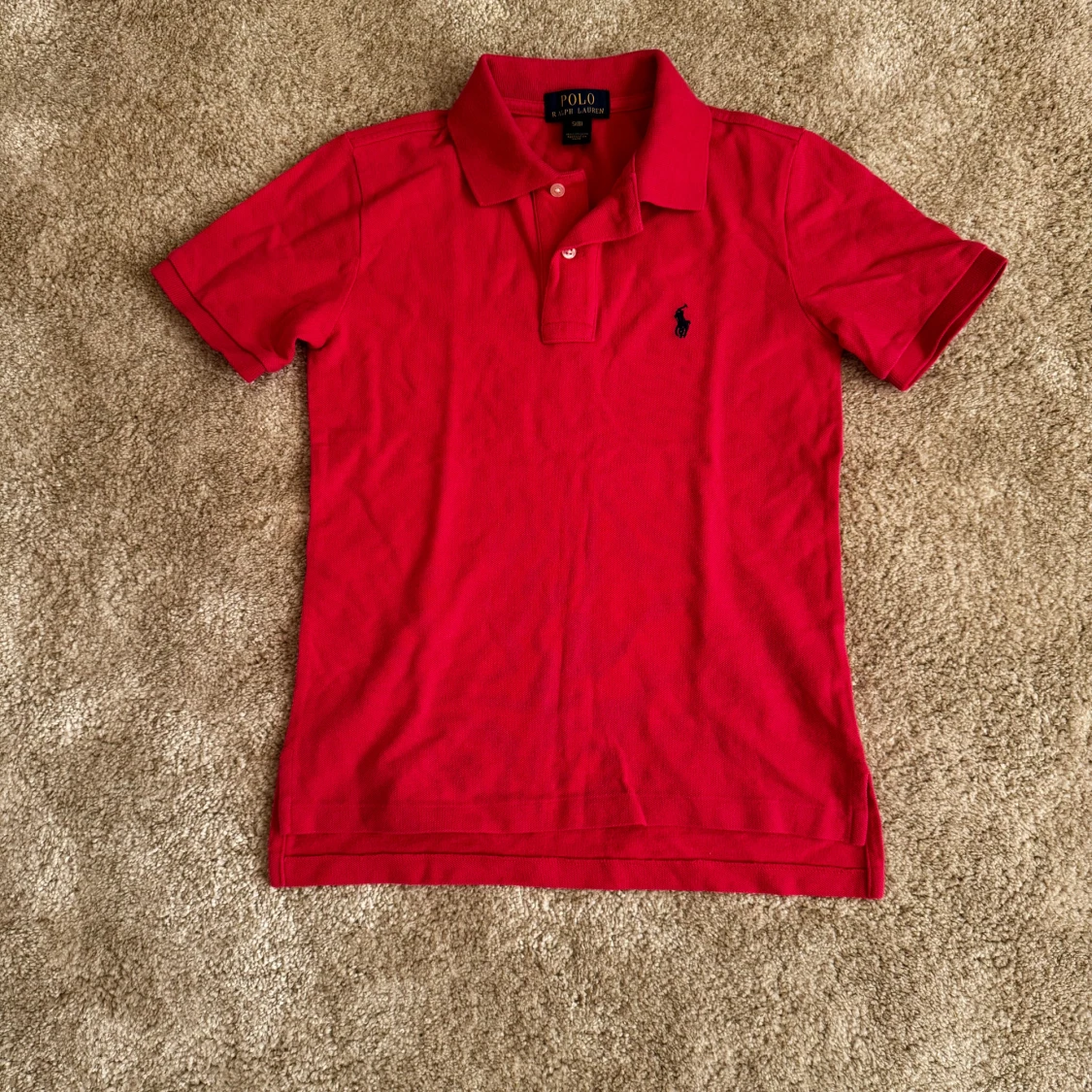 Säljer en klassisk röd pikétröja från Ralph Lauren med korta ärmar och den ikoniska loggan broderad på bröstet. Perfekt för en stilren och avslappnad look. Tröjan har en mjuk krage och knappar framtill. Märke: Ralph Lauren Skick: 9/10 Storlek: S Ord pris: 799 Din stil: spara inlägget så du inte missar denna kappa Inte din stil: Kolla min profil. Du kommer hitta