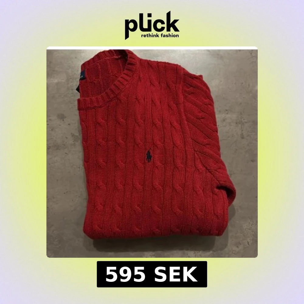 Säljer en fett snygg röd kabelstickad tröja från Polo Ralph Lauren. Tröjan har långa ärmar och en rund halsringning. Storleken är M men passar även på S. Tvär fet och inga tecken på användning.