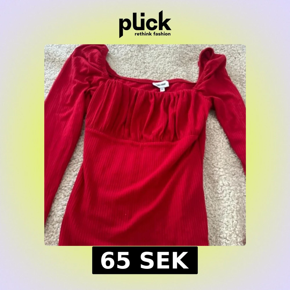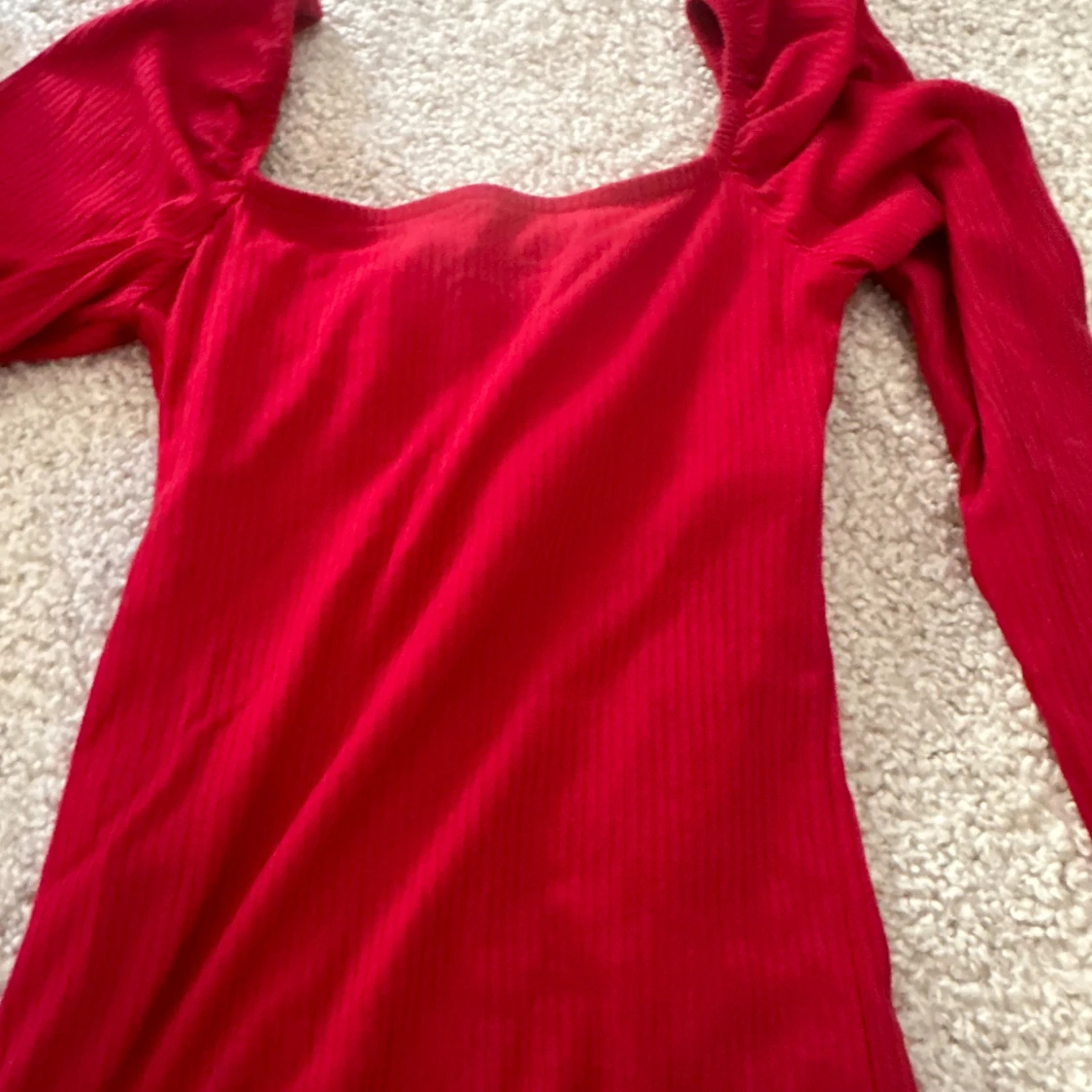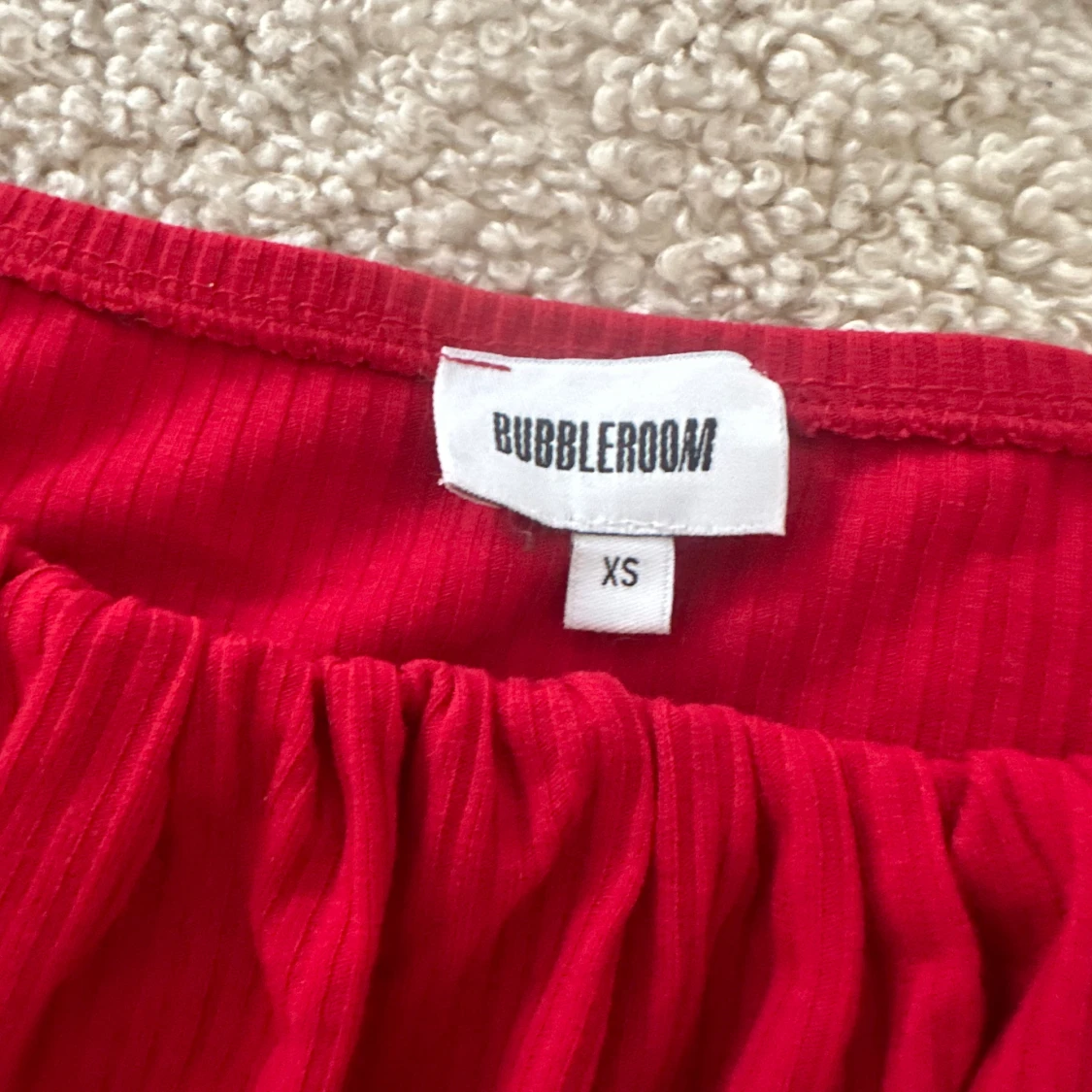 Säljer en snygg röd blus från Bubbleroom i storlek XS. Blusen har ribbad struktur, långärmade puffärmar och en smickrande fyrkantig ringning med rynkade detaljer upptill. Tar frakt, använd en gång