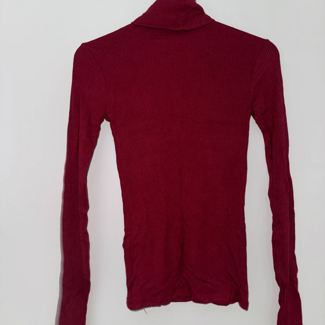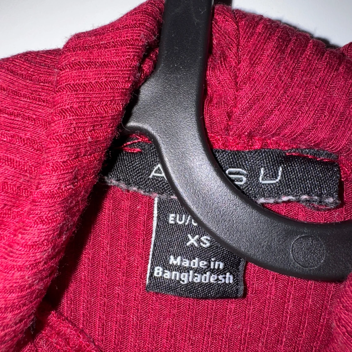 Aldrig använd! Säljer en snygg röd polotröja från Amisu. Tröjan är ribbad och har långa ärmar, perfekt för kyligare dagar. Den är i storlek XS och passar utmärkt för en stilren look. Perfekt att matcha med jeans eller kjol för en trendig outfit.